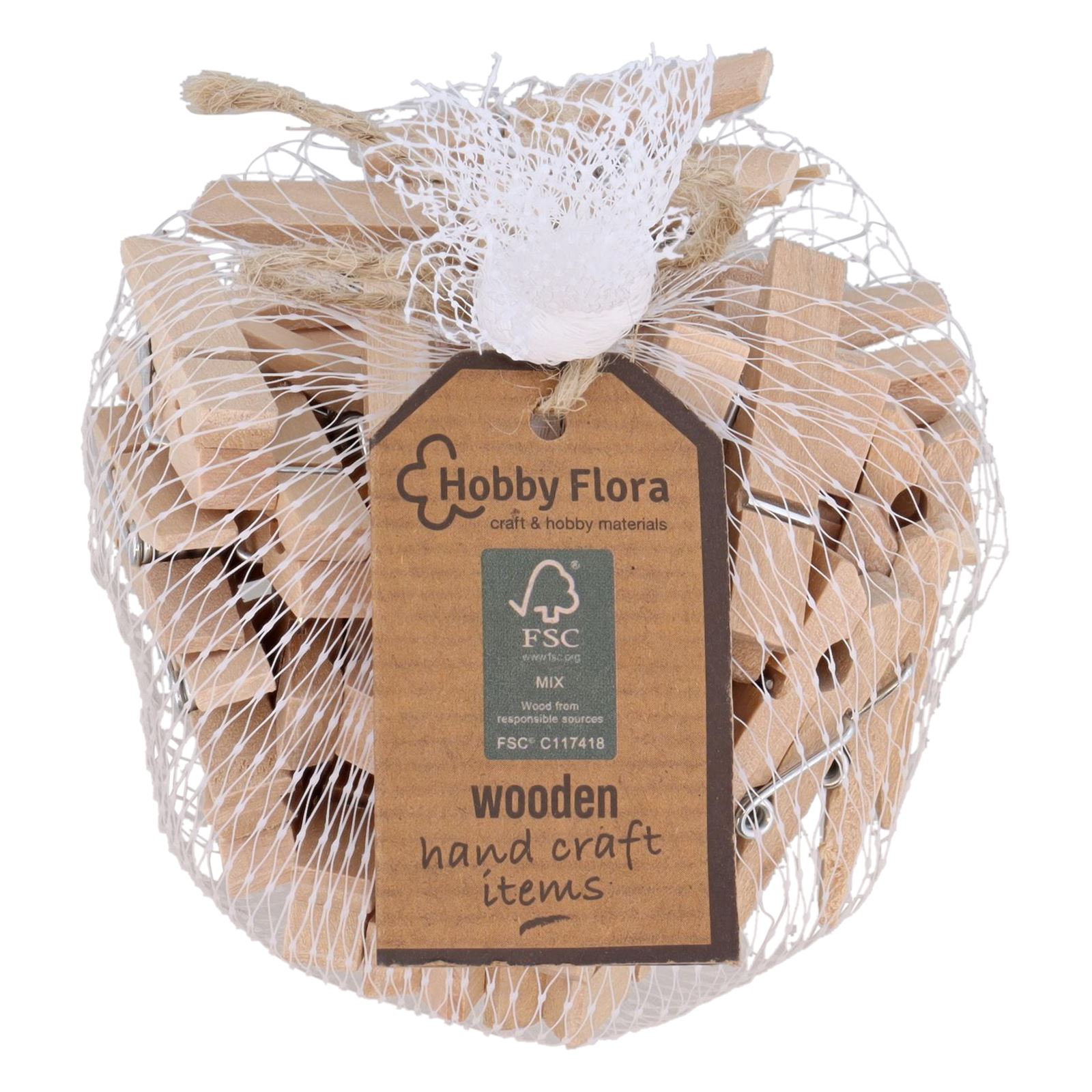 Кліпси виготовлені з високоякісної деревини з сертифікатом FSC. Кліпси поміщені в пакет.