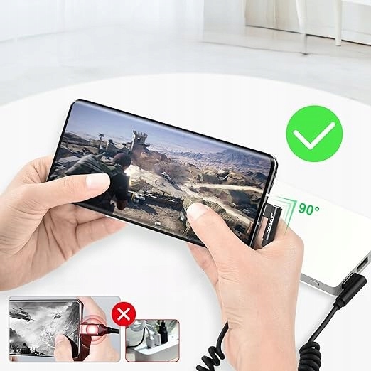 - 【Дизайн із подвійним коліном】Спіральний кабель USB – USB C обгорнутий подвійною прямокутною головкою, яка ефективно зменшує згинання металевої головки, захищає інтерфейс і подовжує термін служби. Він також ідеально підходить для використання мобільного телефону під час заряджання та гри без затримок.