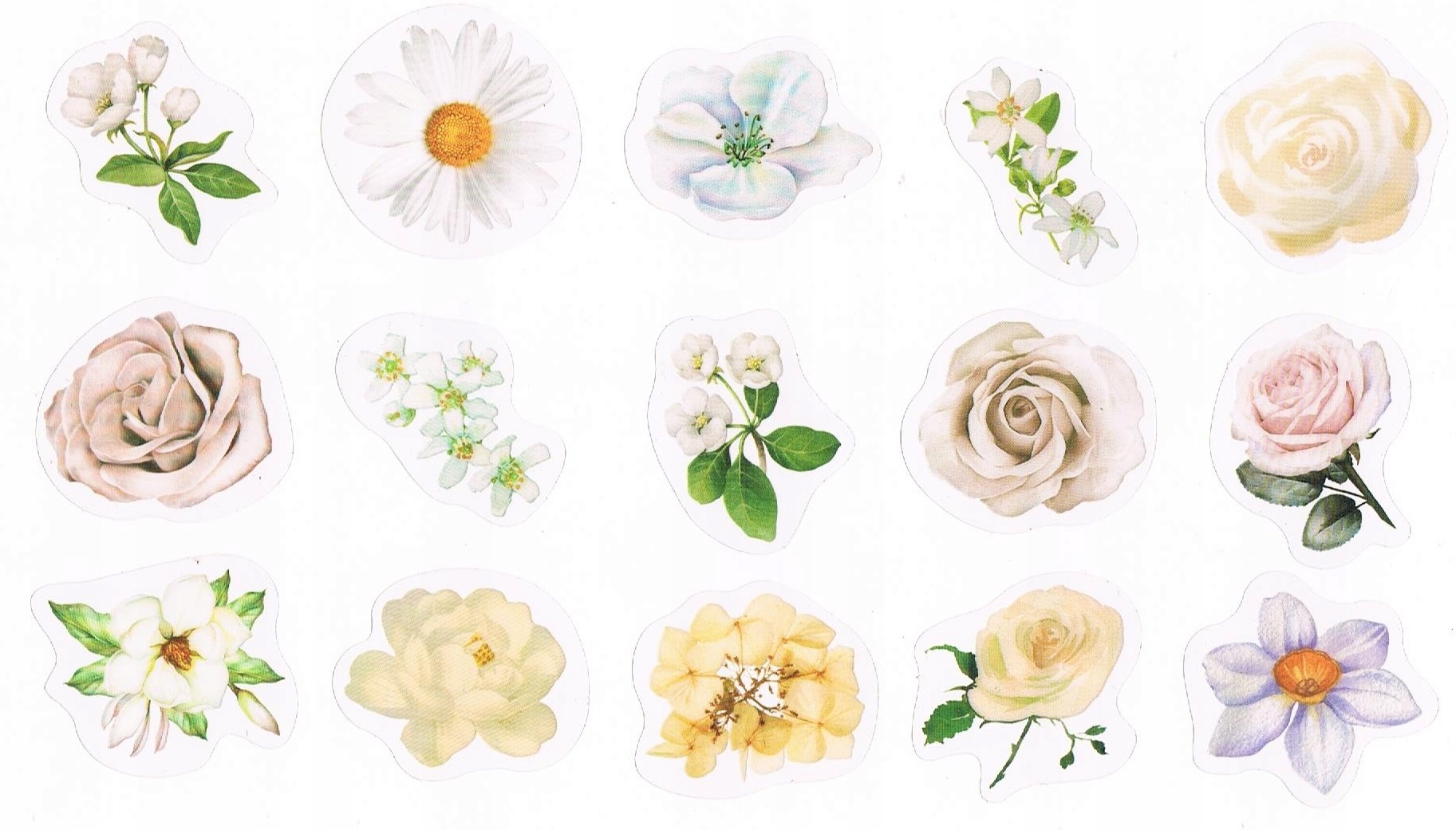 15 wzorów kwiatów po 2 naklejki z każdego wzora oriaz 200 sztuk białej naklejki słoiczek.