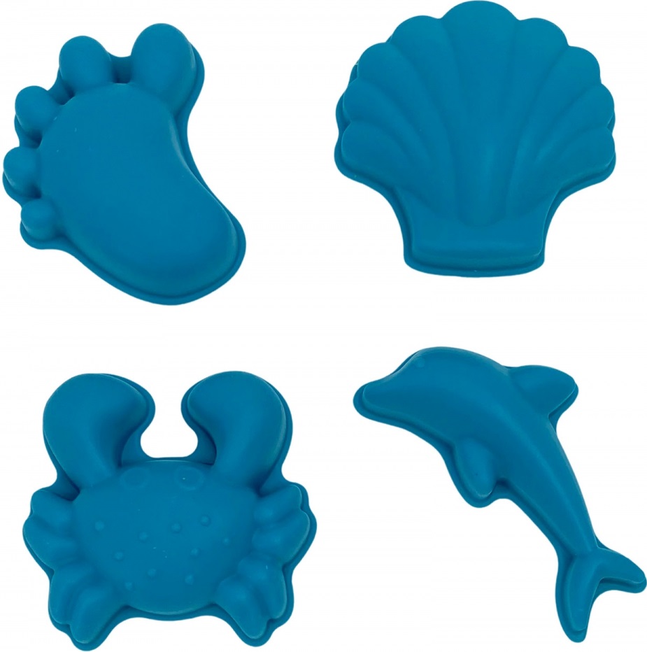 Ви їдете з дитиною і не маєте уявлення, як вмістити іграшки в одній валізі? Ви збираєтесь на сонячний пляж і чи є у вас достатньо важких пластикових іграшок? У нас є геніальне рішення для вас ... силіконові форми, ідеальні для гри в піску, воді, під час купання у ванні. Вони не займають багато місця в сумці чи валізі через те, що ви можете їх розчавити! У наборі чотири м'які форми у формі краба, дельфіна, снарядів та дитячих ніг, усі упаковані в сітку з струною. Особливості
