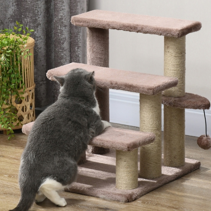 Скрябка для котів, сходи для тварин, 3 сходинки, з м'ячем, 45x40x48 см