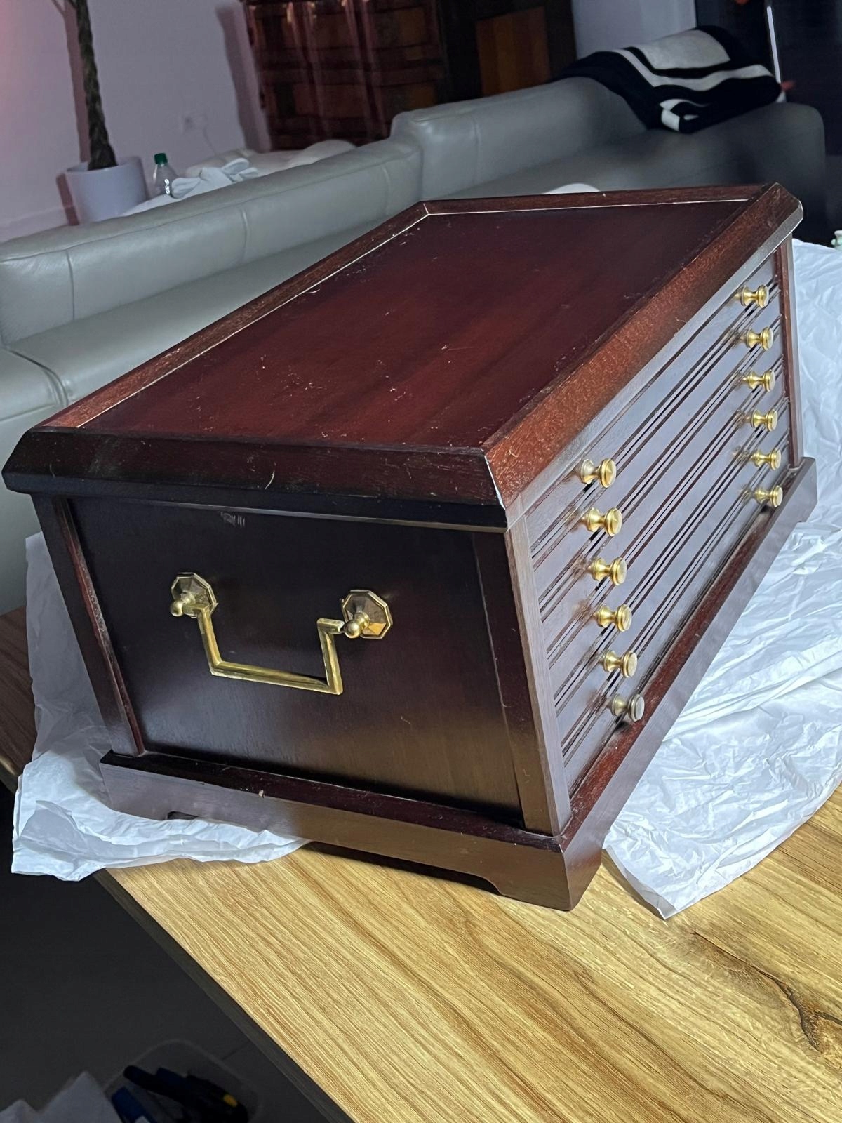 SKRZYNIA MAHONIOWA NA NUMIZMATY