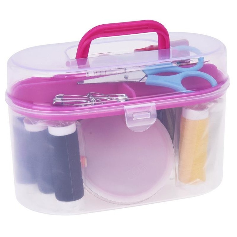 Набір для шиття Набір аксесуарів 50 швейних елементів у практичному контейнері з ручкою. Органайзер із прозорого пластику, закривається на кліпсу.