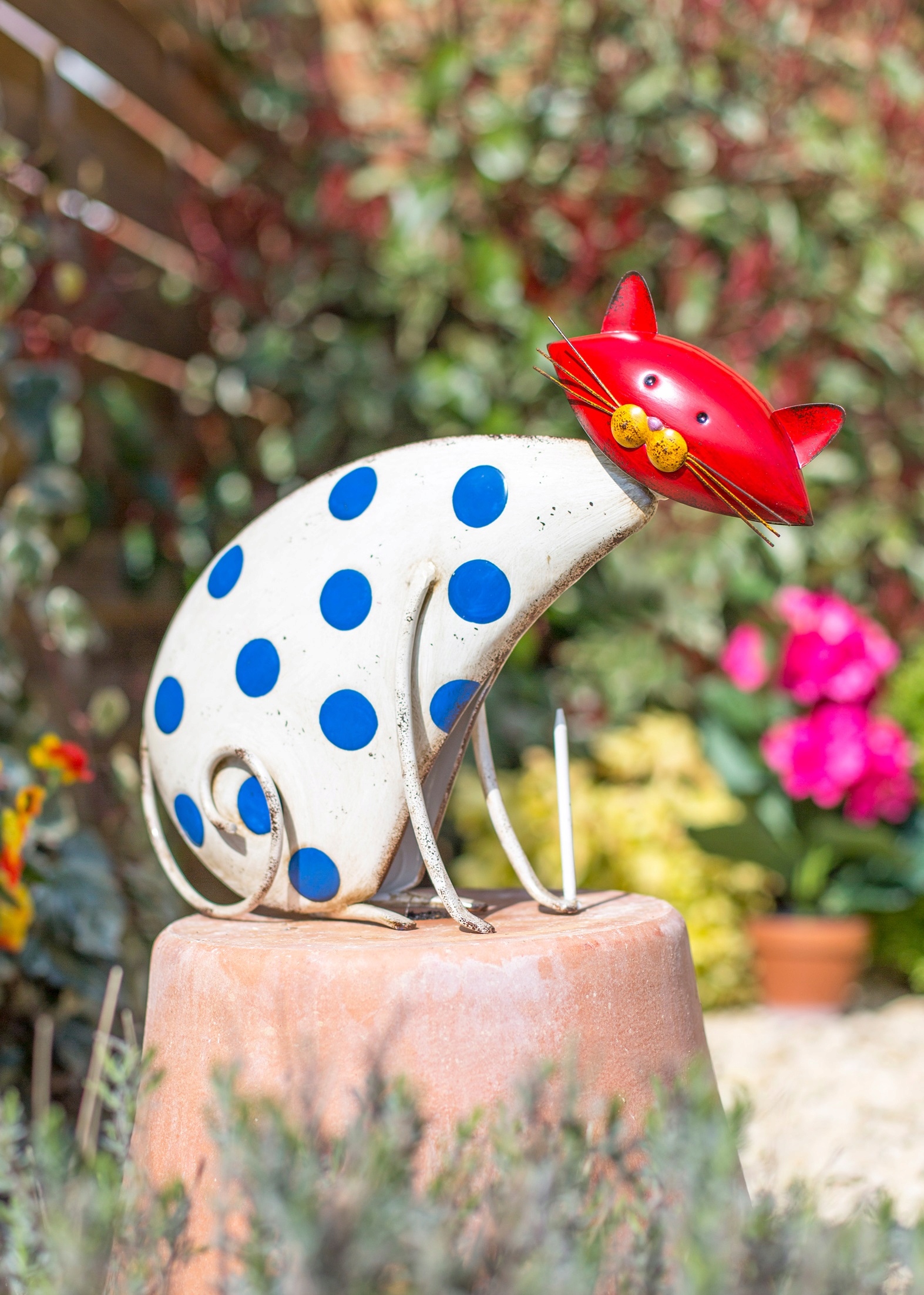 СКУЛЬПТУРА КОТА В ГОРОШОК, ФІГУРКА МЕТАЛЕВА, ДЕКОРАЦІЯ