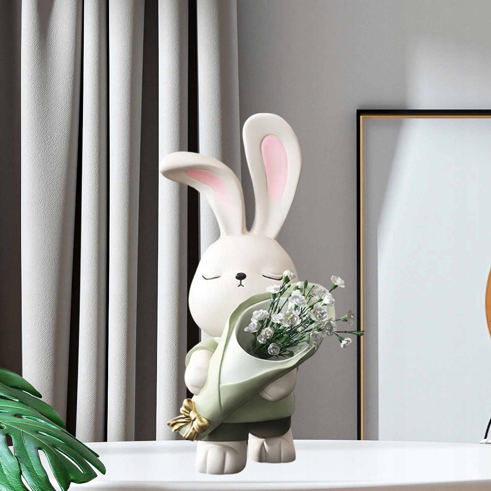 [Матеріал найвищої якості]: Ваза зі статуєю кролика виготовлена з смоли, нової та декоративної форми, а текстура прекрасна.