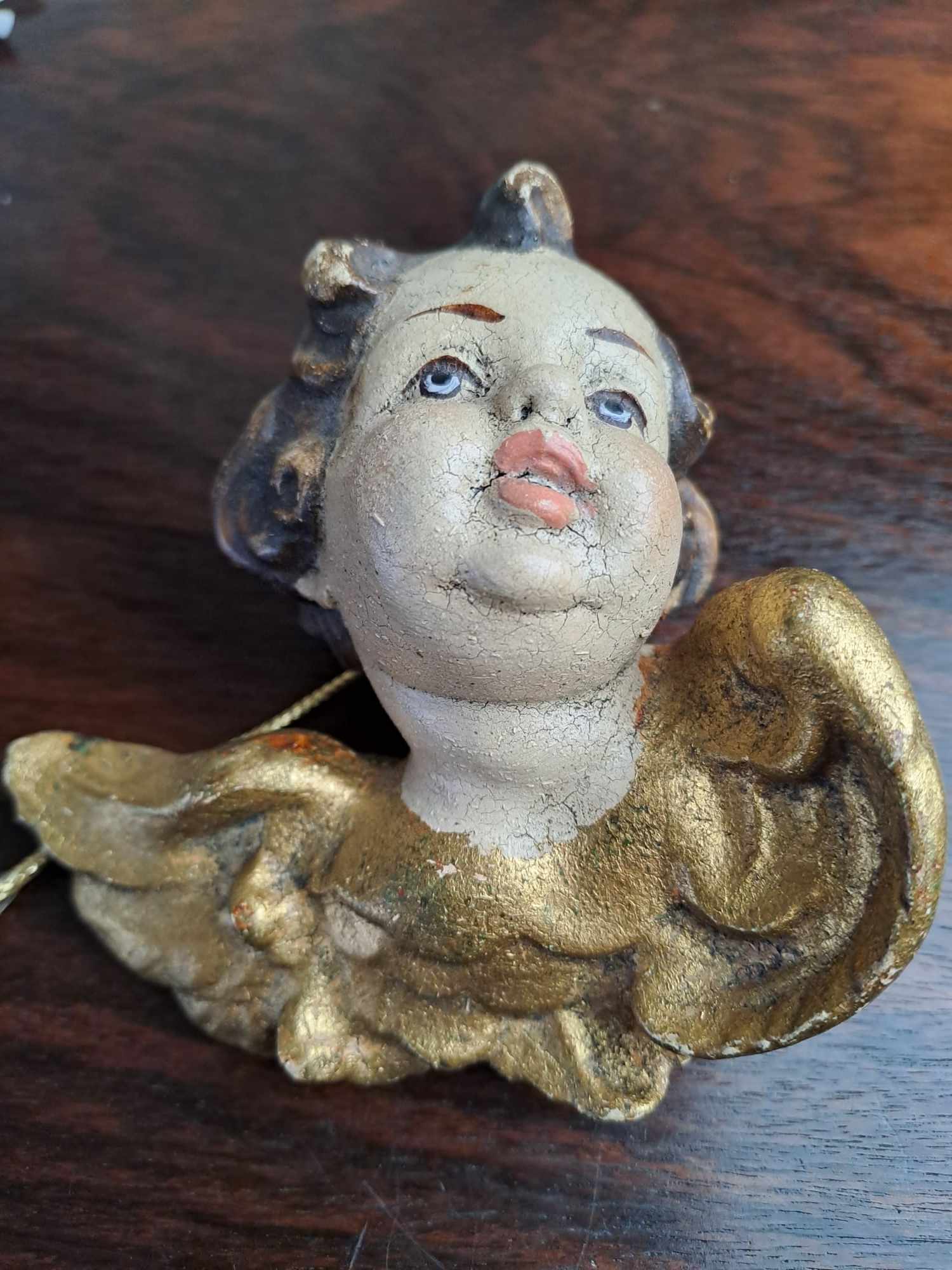 СКУЛЬПТУРНА ГОЛОВА АНГЕЛА ПУТТО ДЕРЕВО В ПОЛІХРОМІ
