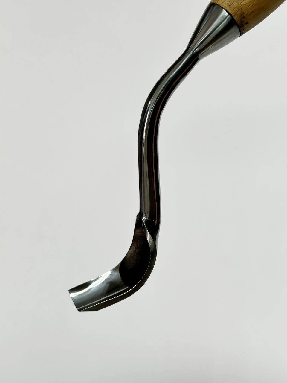 Ми представляємо велику зігнуту скульптурну зуби, спеціально розроблену для різьблення мисок, підштовхів, кружок, ложок та інших глибоких дерев’яних предметів. Завдяки вигнутому формі леза (лебедя на шиї, це дозволяє точно видалити матеріал, не контактуючи з поверхнею деревини, що забезпечує максимальний контроль та комфорт роботи.