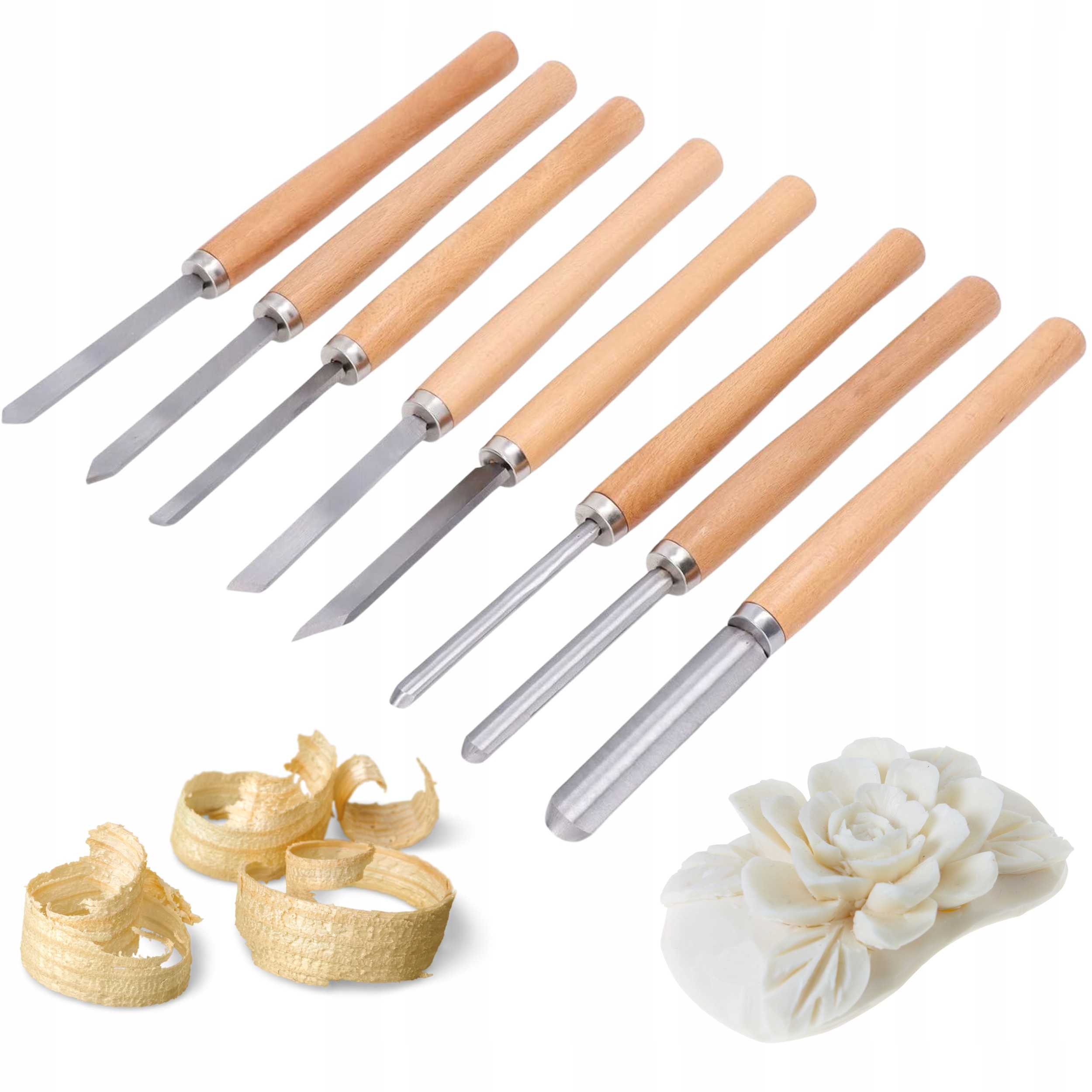 Повний набір зубців для точної обробки - ідеально підходить як для професіоналів, так і для любителів. Виготовлений з високої якості сталі , забезпечення довговічності та точності та ергономічних дерев'яних ручок гарантія комфорту. Ідеально підходить не тільки при вирізанні деревини , але і в милах, гарбузах та для гравірування в ущільнювачах . дерев'яні ручки - ергономічні, зручні та забезпечують певне зчеплення.