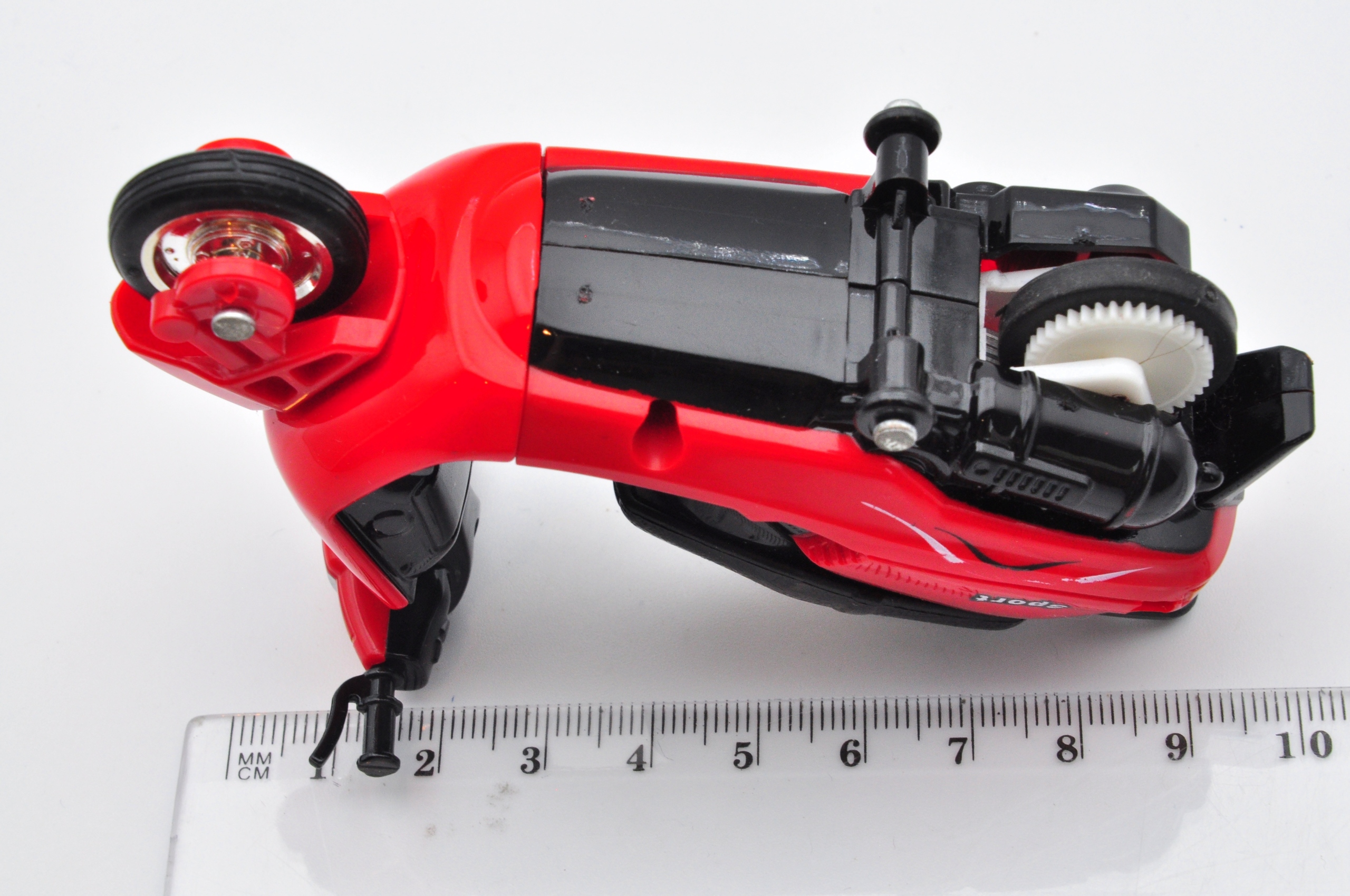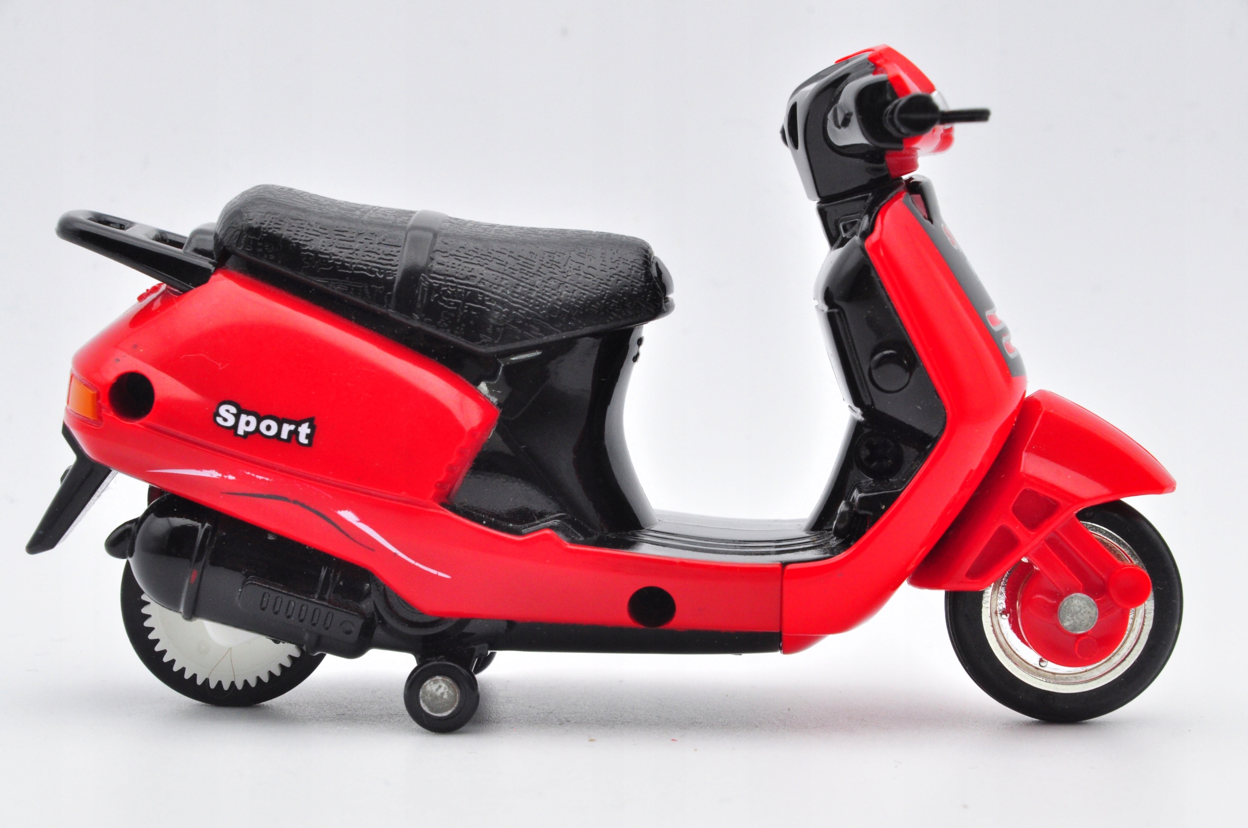 Говоріть у вигляді скутера привертає увагу своїми яскравими червоними та чорними акцентами. Зроблено в основному з пластику, він виглядає твердим і естетично. Наклейки "Спорт" та "Power" надають йому спортивного персонажа, що робить його привабливим для колекціонерів, які цінують міські транспортні засоби. Стан моделі дуже хороший, з мінімальними ознаками використання. Завдяки його унікальності та ретельній продуктивності, це цікавий елемент кожної колекції.
