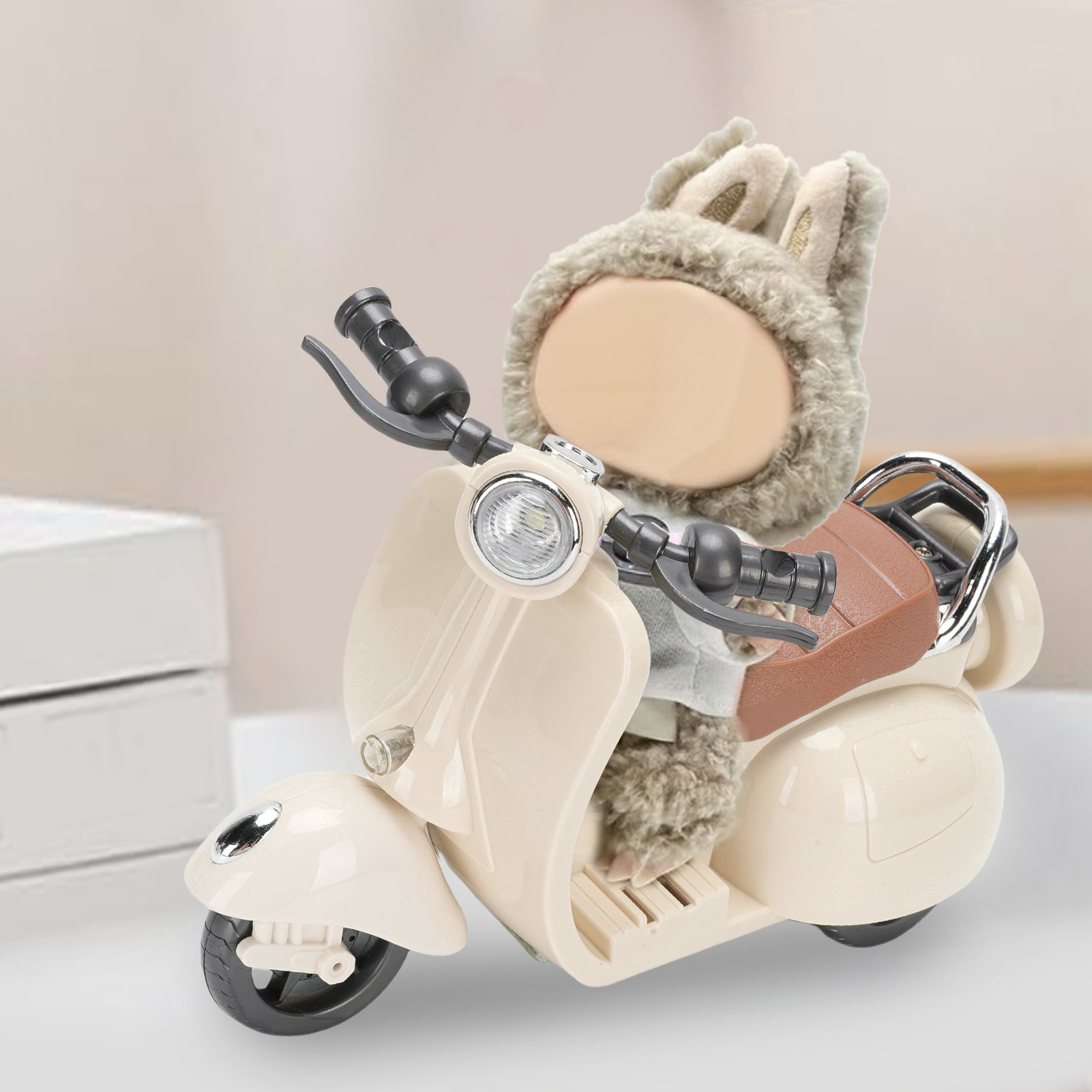 1. Чарівний та компактний дизайн: Цей міні -електричний скутер чарівний і просторий, щоб вмістити ляльки або статуетки, ідеально підходить для стильного декору.