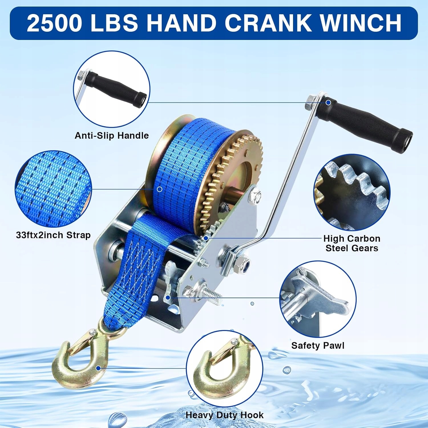 ⭐✅⭐✅✅✨Ручна лебідка FreeTec із синьою поліестеровою лебідкою Bergung (10 м 2500 фунтів)