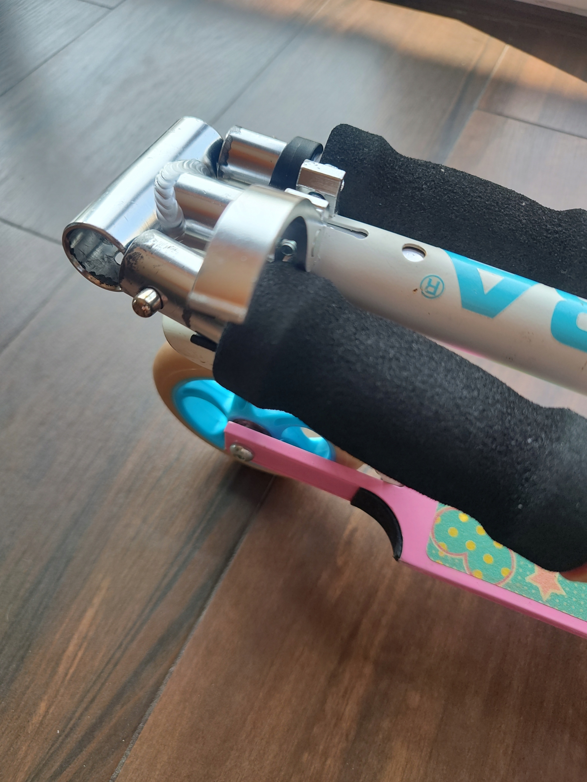 Механічна функція, яка дозволяє зібрати скутер, є дуже корисним та зручним поліпшенням подорожі. Складний транспортний засіб займає набагато менше місця, і ви можете взяти його до автобуса чи поїзда, не турбуючись про відсутність вільного місця. Ручка набори паралельно платформі, завдяки якій формі не нагадує букву "L". Буде простіше покласти його в багажник і взяти його на довгу подорож, наприклад, у відпустці.