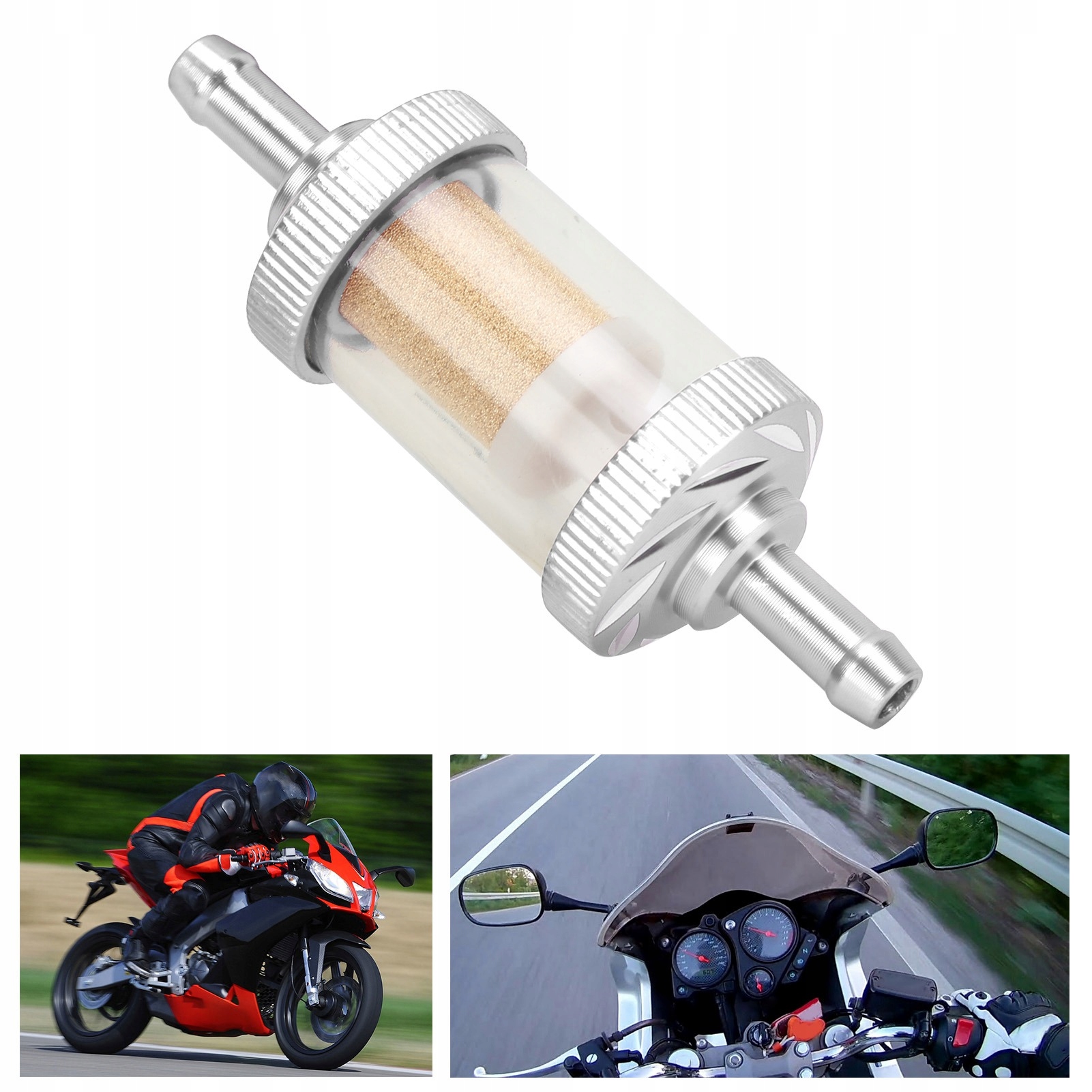 Опис: Цей продукт використовується в мотоциклі 6 мм, він може ефективно фільтрувати забруднення газу, вдосконалюючи чистоту газу, що спричиняє повне поєднання газоліну. бензин, покращити продуктивність.