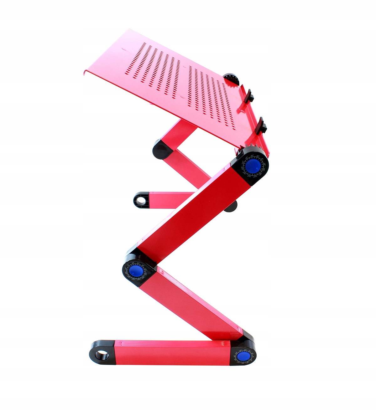 Алюмінієвий регульований стіл для ноутбука з функцією охолодження. Характеризується легкою і міцною конструкцією. Це дозволяє комфортно користуватися ноутбуком навіть у положенні лежачи. Повне регулювання нахилу стільниці та ніжок дозволяє підлаштувати стіл під потреби користувача. Функцію охолодження забезпечує тихий вентилятор, що живиться від порту USB. Столик оснащений додатковою поличкою для мишки. Це надзвичайно ергономічне рішення, яке підвищує комфорт використання ноутбука!