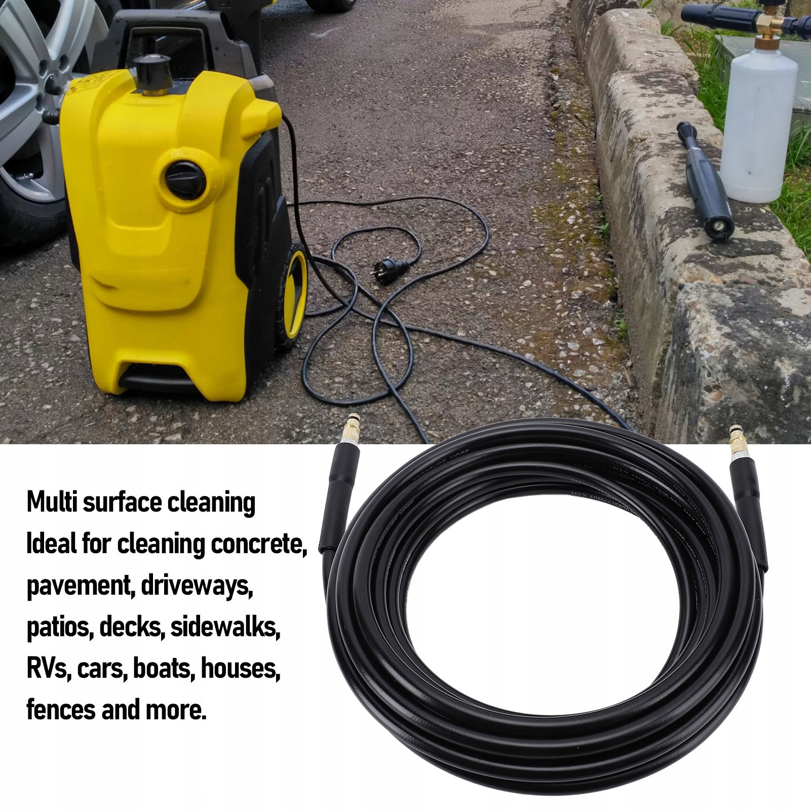 4. Багатопопулярне рішення: шланг для пральної машини живлення чудово підходить для очищення бетону, тротуарів, проїзних доріжок, внутрішнього дворика, в блоці, тротуарах, автомобілях, автомобілях, відділах, будинках, огорожах та інших.