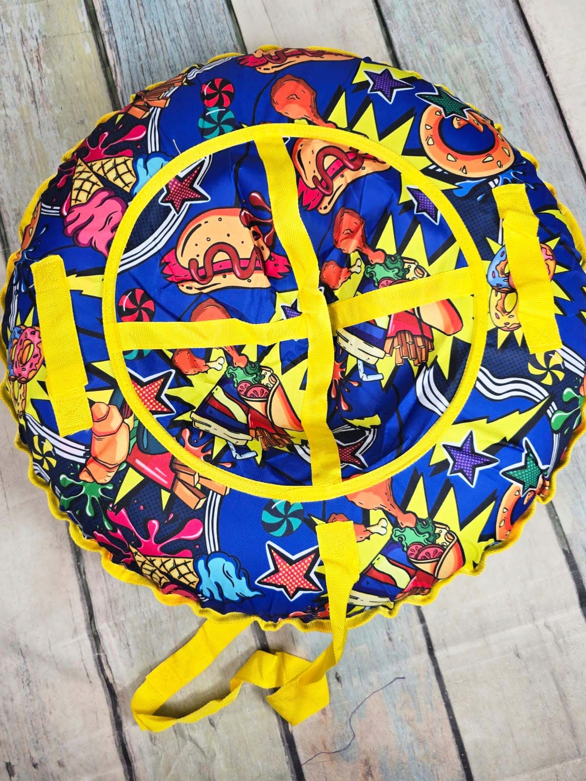 Велика поверхня сидіння гарантує комфортне водіння. У ньому є ручки, які використовуються для утримання під час руху. У шині є стрічка, призначена для витягування лише самих санок. Слайд використовується для керування лише на сніжних схилах.