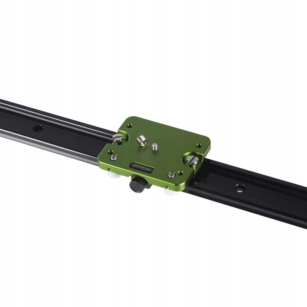 Genesis B-Slide 120 II - це нова версія популярного слайдера з універсальною направляючою довжиною 120 см. Як і його старший аналог, він призначений для фотоапаратів і відеокамер вагою не більше 4,5 кг. Тому він є основою як для камер DLSR, так і для невеликих відеокамер. Модель B-Slide 120 II оснащена кількома новими елементами, які підвищують комфорт роботи. Слайдер-платформа має 4 тефлонові ролики, завдяки чому рух плавний, дуже тихий і не створює т.зв. абразивні вібрації. Крім того, тефлон не притягує пил, пісок або інші частинки бруду, які негативно впливають на ковзання платформи. Два ролики регулюються для зміни положення по горизонтальній і вертикальній осі. Це дозволяє ідеально налаштувати ковзання платформи відповідно до ваших потреб. Платформа також має розташовану по центру зовнішню різьбу ¼" з перехідником 3/8", що дозволяє монтувати фото- чи кіноголовку. Крім того, він оснащений чотирма внутрішніми різьбами ¼" для додаткових аксесуарів і гальма. Дуже практичним рішенням, яке використовується в Genesis B-Slide 120 II, є кріплення Arca-Swiss, завдяки якому можна прикріпити слайдер по всій довжині напрямної прямо до голови. Слайдер також можна прикріпити до штативів класичним способом за допомогою гвинтів. Направляюча оснащена 9 різьбовими отворами ¼" і одним, розташованим по центру, діаметром 3/8". Ще однією новою функцією, адаптованою до серії B-Slide II, є вагові блоки. Прикріплення постійного вантажу дозволяє точно регулювати швидкість ковзання платформи відповідно до ваших потреб. Блоки розташовані зліва і справа від напрямної. Ніжки повзунка можна повністю відкрутити або відрегулювати їх довжину, таким чином змінюючи висоту повзунка. Якщо Genesis B-Slide 120 II використовується на нерівній поверхні, її можна вирівняти за допомогою регульованих ніжок. Genesis B-Slide 120 II практично повністю виготовлена з анодованого алюмінію, що гарантує високу якість, жорсткість і довговічність конструкції. Основні функції: