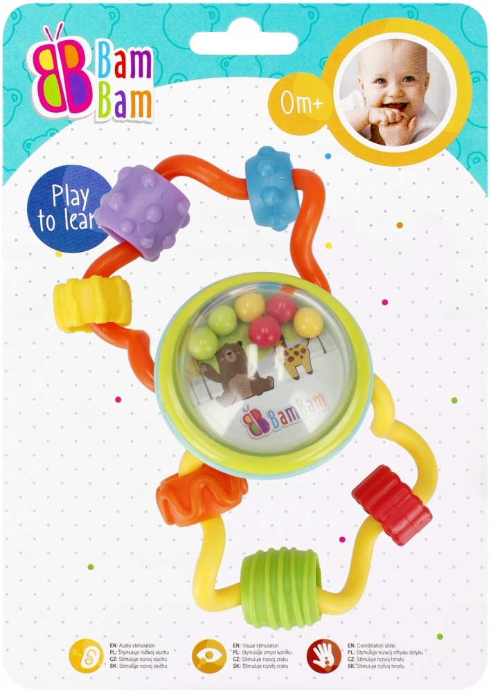повзунок брязкальця, призначений для немовлят від народження. В інтенсивних кольорах, з різними текстурами матеріалів та різних форм. Він має інтерактивні елементи, що заохочують малюка грати, стимулюючи розвиток його почуттів зору, слуху та моторних навичок. Ручки забезпечують легке захоплення та тримання брязкальця в маленьких руках. Додаткові елементи, такі як обертові кульки всередині м'яча або кілочки на ободі, роблять задоволення більш привабливим, підтримуючи розвиток ручних навичок та дрібних моторних навичок. Розміри/вага/акумулятори: Розміри продукту Довжина x Висота x Глибина см: 8х13x4, Розміри упаковки: довжина x висота x глибина. CM: 15x20x6, вага продукту без упаковки кг: 0,05 кг, вага продукту в упаковці кг: 0,07 кг, не потребує акумуляторів. Іграшка призначена для дітей віком: 0 м. Упакований на пухир. У головній коробці, 24 штуки кожен.