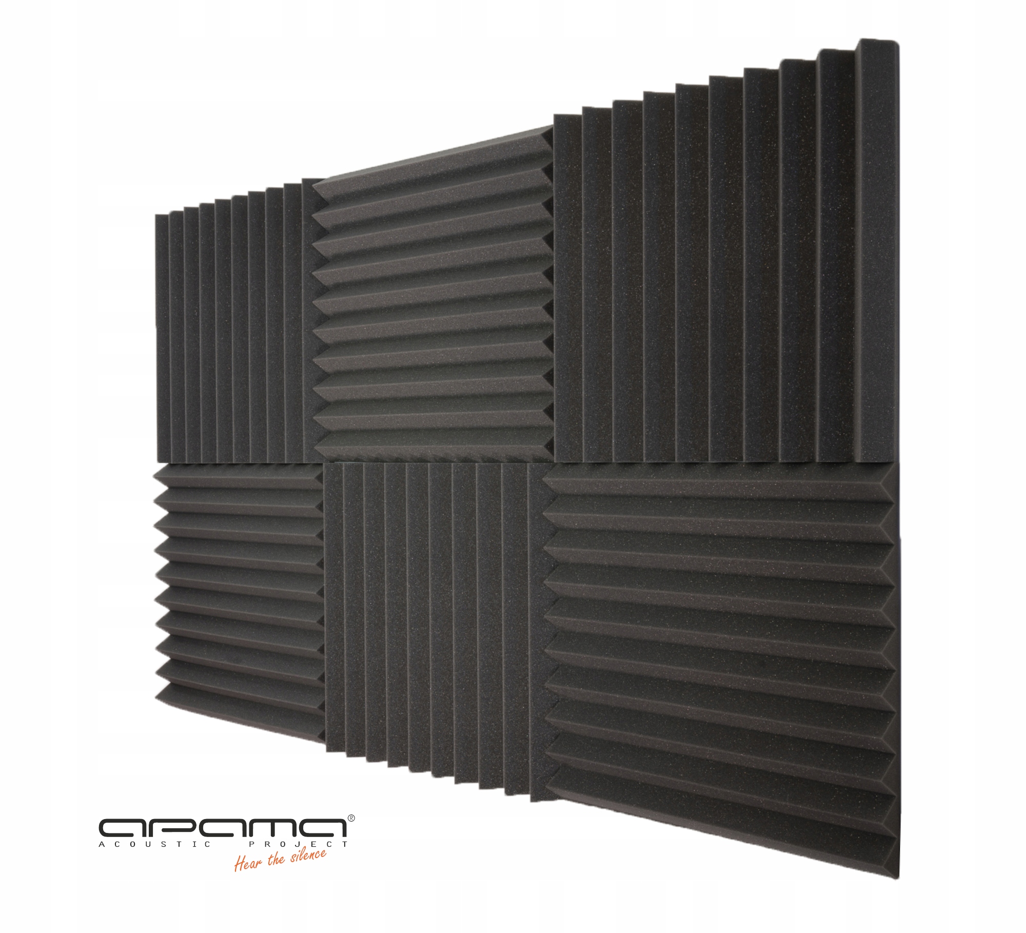 Ми пропонуємо вам оригінальний набір із шести акустичних панелей, що поглинають та палючі панелі зі структурою клинів - ідеальний набір для покращення якості звуку у вашій кімнаті!