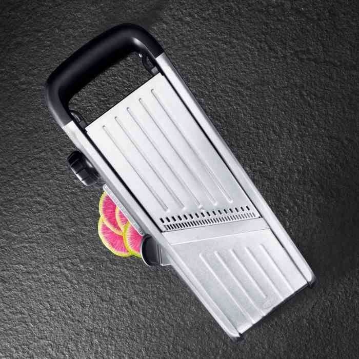 - точні леза дозволяють нарізати прямі, рифлені та вафельні скибочки різної товщини,