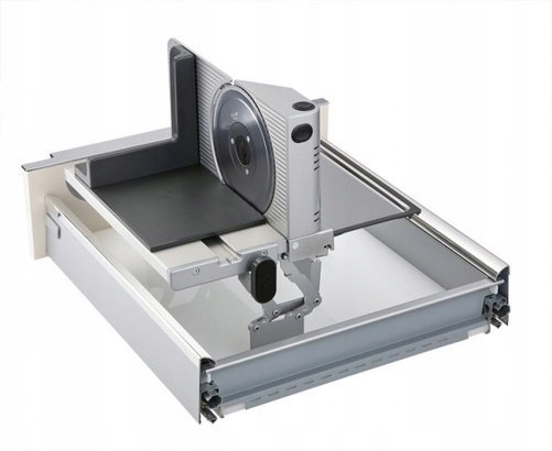 Вбудований слайсер для правшів. Виготовлений повністю з металу, він забезпечує більшу стабільність і найкращі результати різання. Система двопальцевих перемикачів підвищує безпеку роботи. Найвища якість виготовлення ставить цей продукт в один ряд з професійними виробами.
