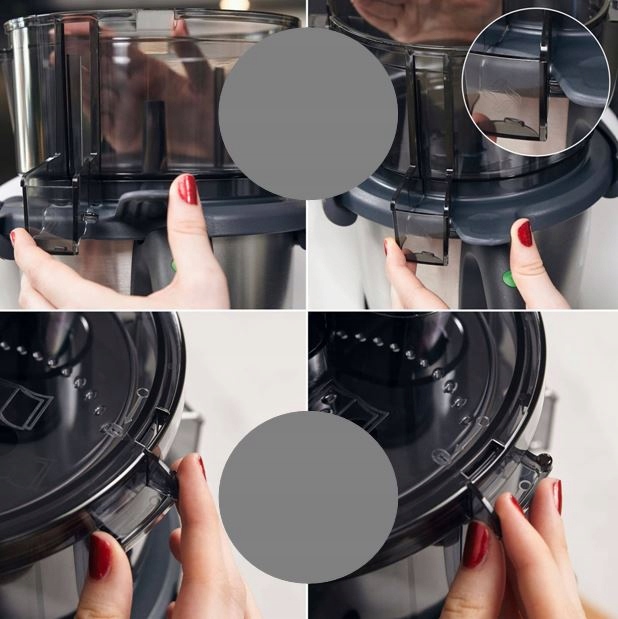 Як працює нарізка Wunderslicer? 4 Запустіть Thermomix на рівні 2,5 у зворотному напрямку, щоб перемістити вказівки годинника та почати подрібнювати овочі. CleasheS збирають у контейнері Wunderslicer і можуть бути додатково оброблені, як бажають.
