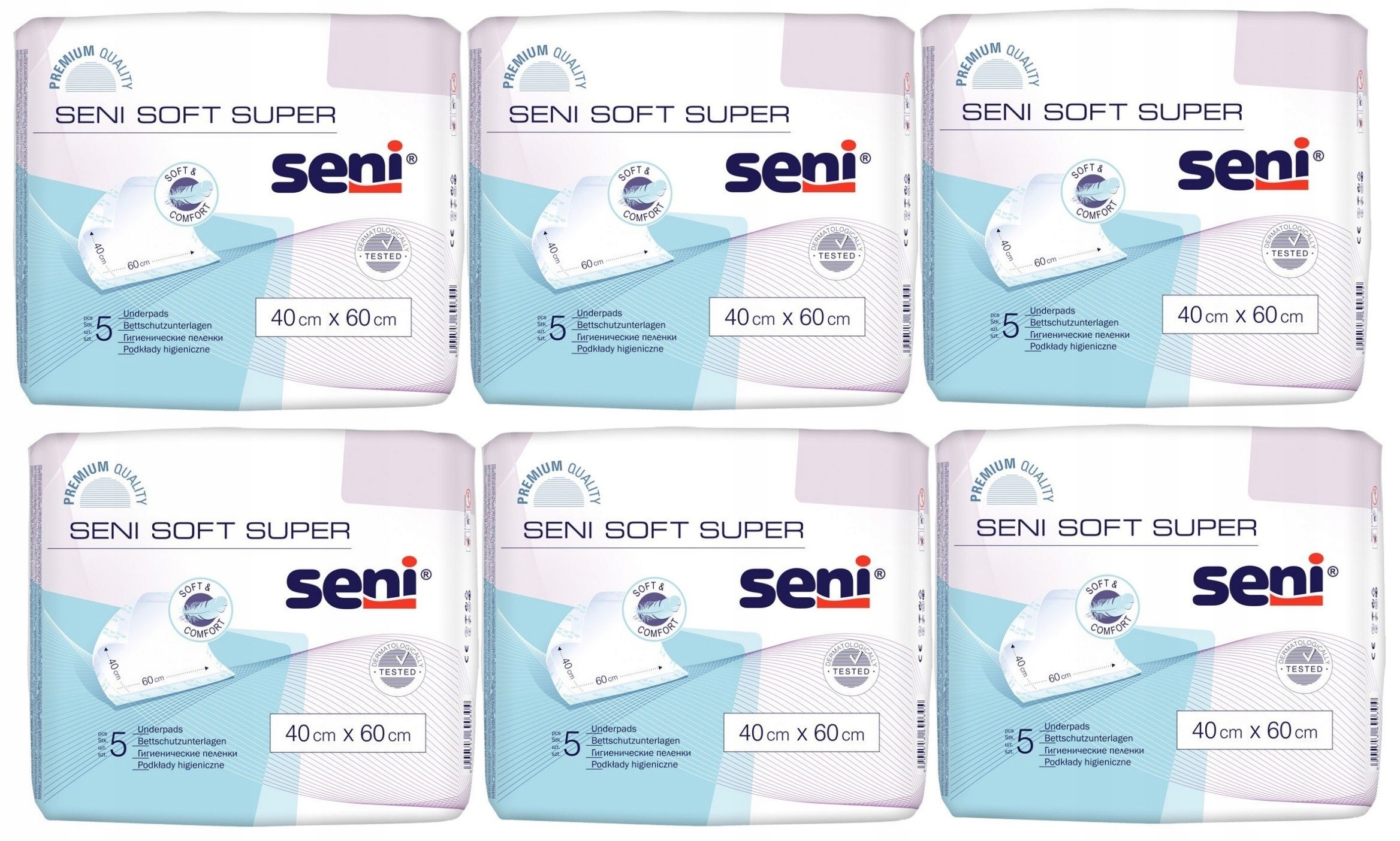 Набір містить 6 упаковок прокладок Seni Soft Super 40х60 см по 5 шт.
