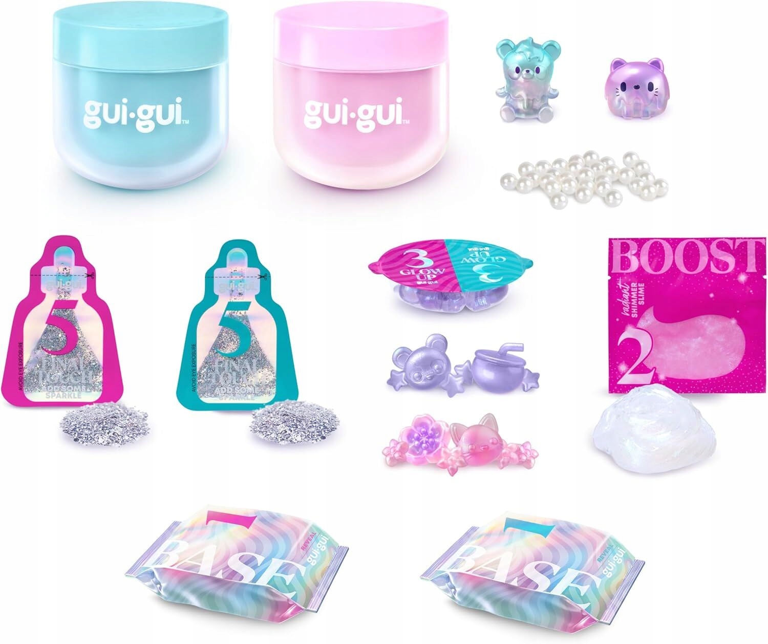 Розкрийте своє сяйво слизу за допомогою Gui Gui Shimmer Slime Deluxe Twin Pack – розкішного сенсорного набору, створеного для любителів блиску та стилістів. У цей набір входять ексклюзивні Shimmer Slime і Crystal Pearl Slime, і діти мають усе необхідне, щоб змішувати, прикрашати та освітлювати свій слайм за п’ять простих кроків.