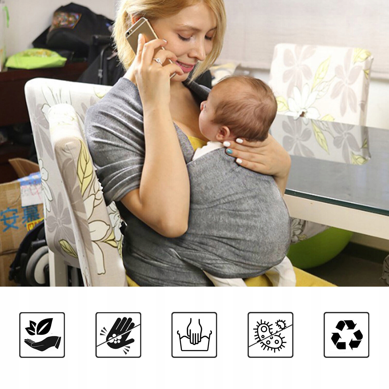 【Сповивання в дитячому садку】 Сповивання наближає вашу дитину до вас. Надягаючи плачучу дитину в шарф. Дитина почувалася спокійною, слухаючи серцебиття матері. Подібно до мами-кенгуру, що виховує дитину, він може дати дитині відчуття безпеки.