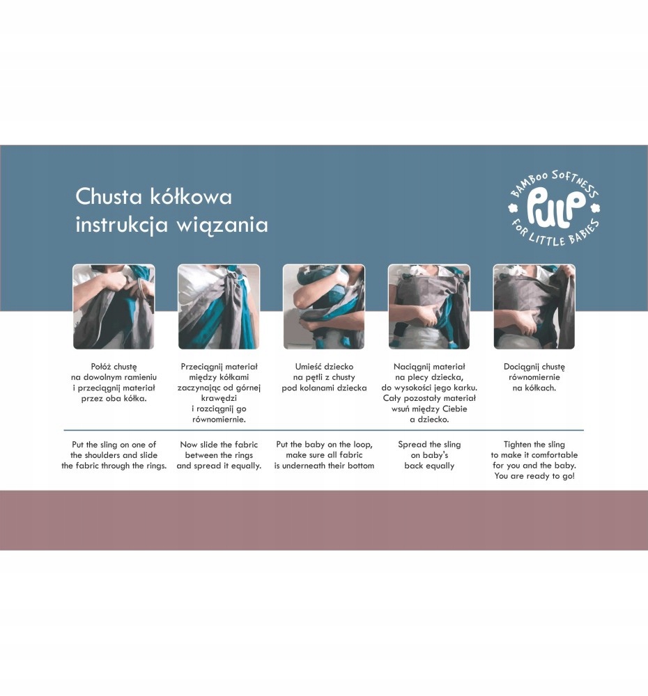 Наш слінг рекомендований для дітей до 15 кг, тому він не буде використовуватися протягом тривалого часу тільки для дитини, але і для більшого малюка. Можливі варіанти зав'язування хустки: на живіт, в колиску і для дітей старшого віку на спині.