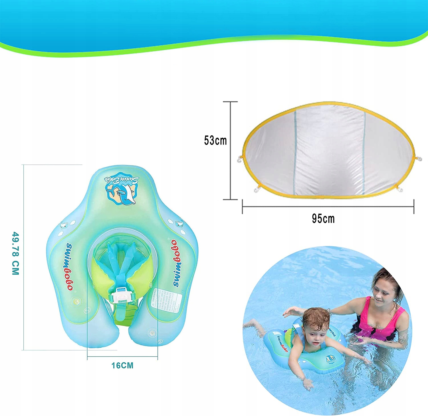 💧 【Знімний навіс】: немовлята для басейну оснащені дихаючим і знімним сонцезахисним кремом, що захищає шкіру дитини від сонця і дозволяє насолоджуватися літом завжди і скрізь. Підходить для плавання для дітей з 6 місяців.