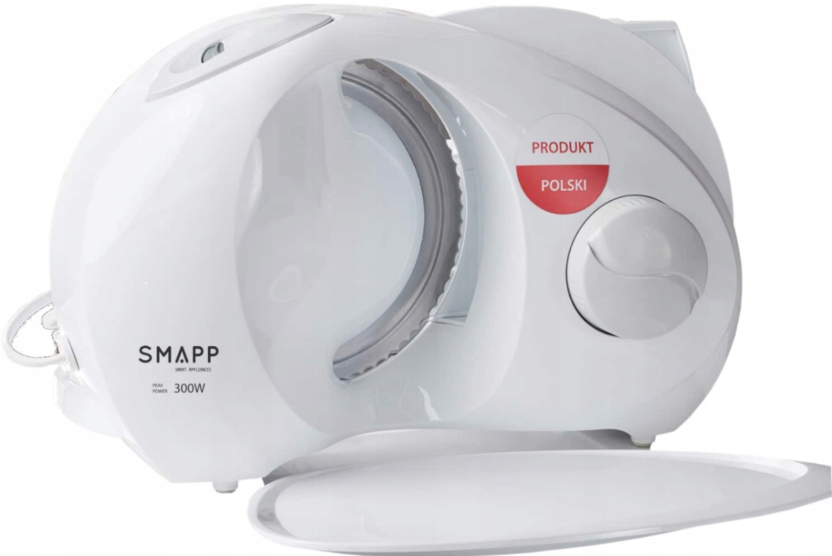 Новий, міцніший слайсер SMAPP 294.5 виготовлений із пластику найвищої якості та ножа із загартованої нержавіючої сталі. Дана модель оснащена більш потужним двигуном з потужністю до 300 Вт!