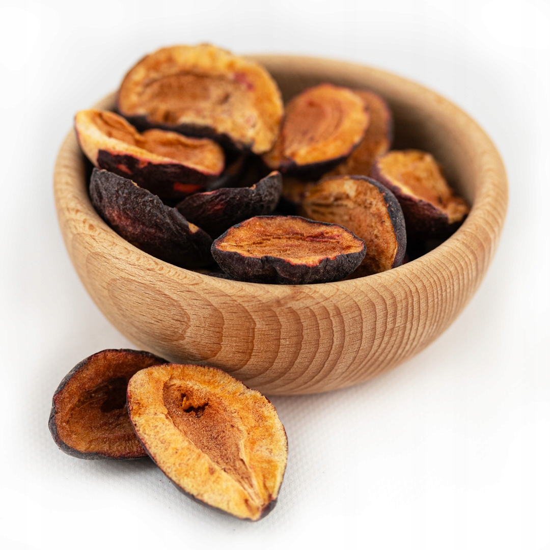 Продукт без додавання цукру. Без консервантів. Завдяки процесу сублімації плоди сливи зберігають первісну форму, колір, аромат і приблизно 95% усіх цінних поживних речовин.
