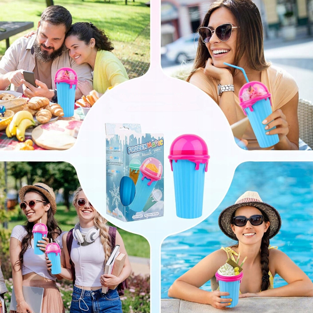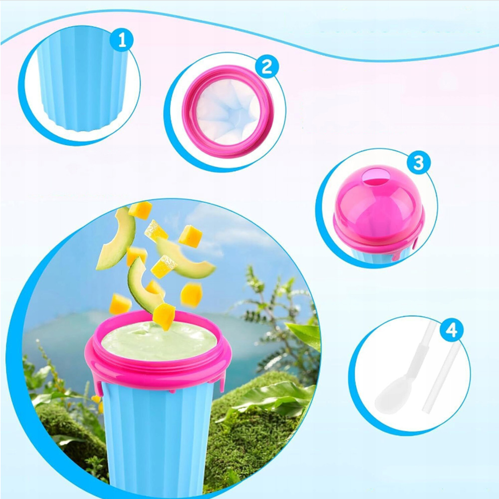 Завдяки цій чашці, ви можете приготувати заморожені напої смішно. Принесіть радісний досвід на літо. Діти теж люблять це. Ви можете використовувати в холодильнику різні соки для напоїв, щоб створити змішані коктейлі з різними смаками. Наприклад: сік, кола, спрайт, молоко, йогурт тощо