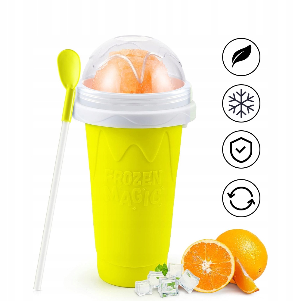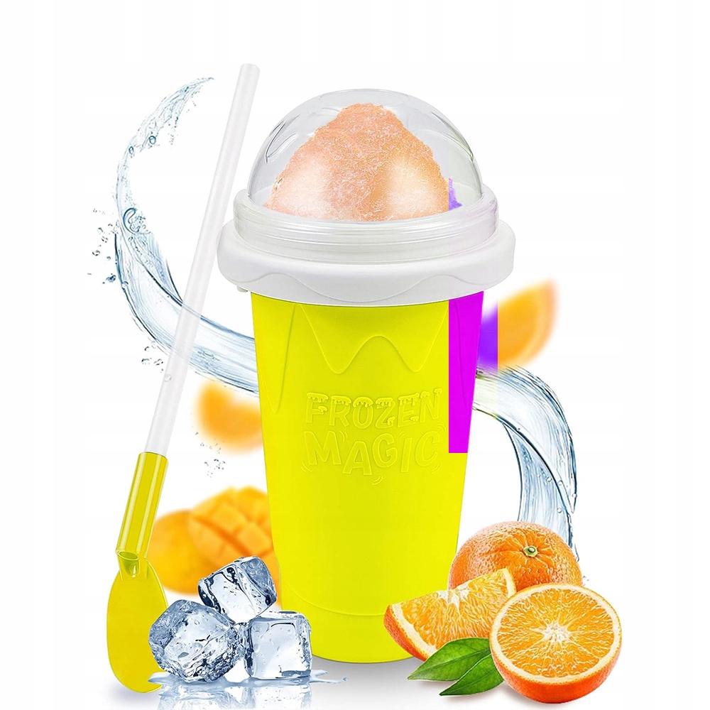 🍧🍧🍧 【вбудована функція заморожування】 Слішна кружка має вбудований морозильник, якого можна досягти, неодноразово натиснути після заморожування, що допомагає вам швидко робити коктейлі та насолоджуватися прохолодним літом. Повторне використання】 Внутрішня ємність чашки морозива виготовлена з матеріалу EVA, який може мати контакт з їжею. Зовнішній шар виготовлений з силікону, призначеного для контакту з їжею, яка приємна на дотик, стійкий до капання і не деформується легко. Інші деталі виготовлені з високоякісного матеріалу ПП. Чашки добре запечатані, вони не просочуються легко, вони підходять для багаторазового використання (ви не можете мити у пральній машині!) Унікальний дизайн ідеально підходить для дітей, щоб насолоджуватися різними смаками в Слоші, ідеальним подарунком для сім'ї та друзів влітку!