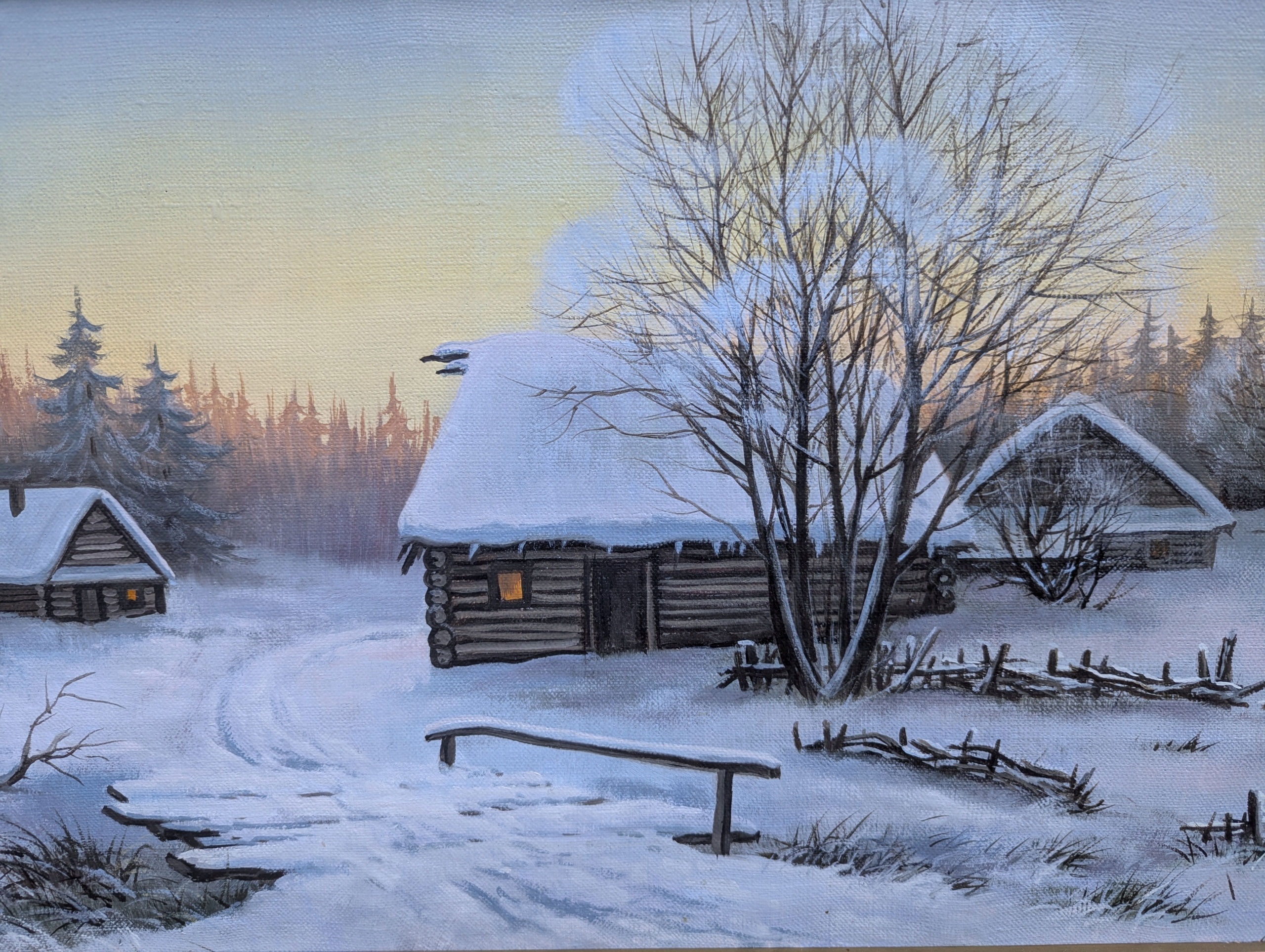 Slobodan Trpevski (MaceDonia) Аукціонна картина зимова золота арт -рамка
