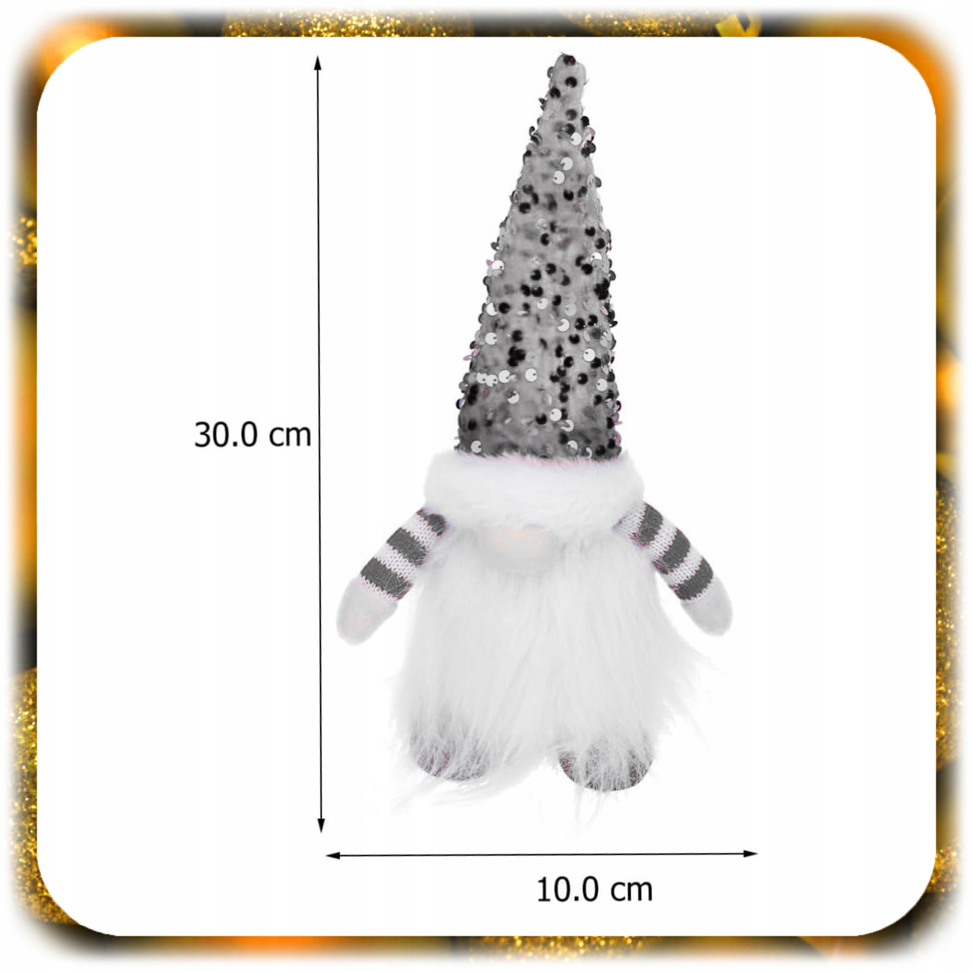 Подаруйте витончену елегантність і тепло Різдва у свій дім завдяки унікальному сірому світлодіодному гному з капелюшком із блискітками.