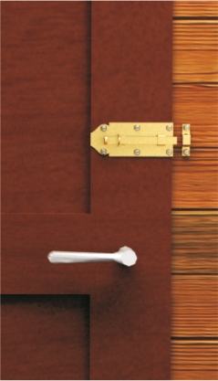 - Засув для віконниць, дверей і скринь із місцем для навісного замка.