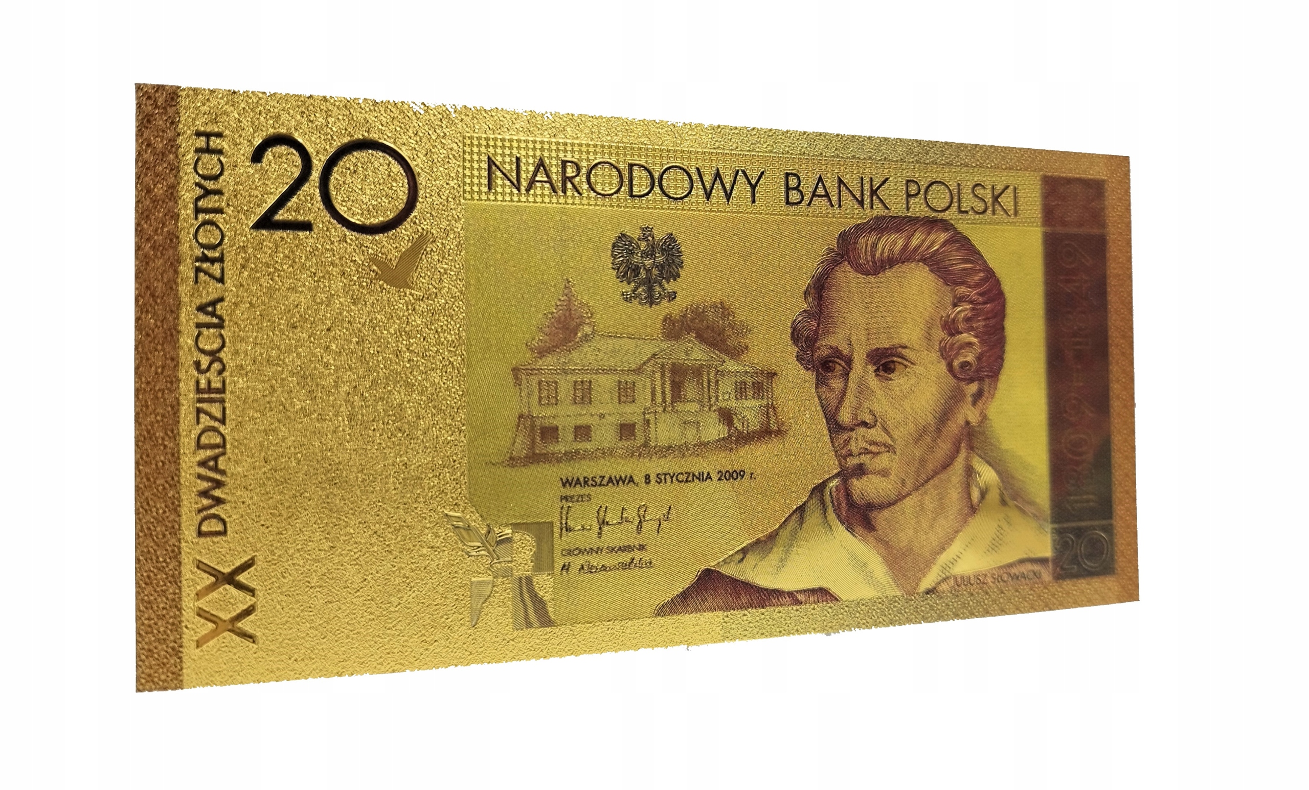 ПОЗОЛОЧЕНА БАНКНОТА НОМІНАЛОМ 20 ЗЛОТІВ ЮЛІУШ СЛОВАЦЬКИЙ