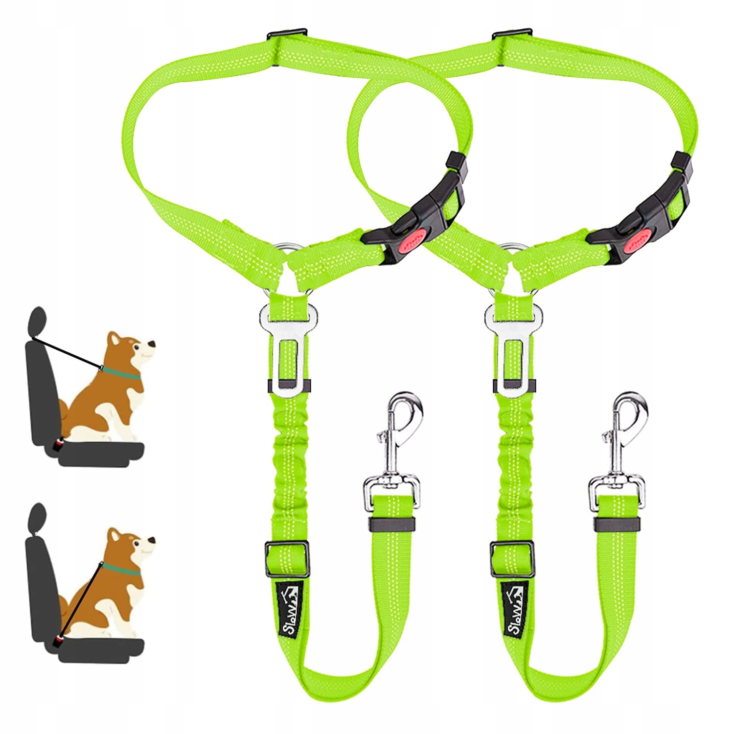 SLOWTON Автомобільні шлейки для собаки 2в1 Регульовані світловідбиваючі