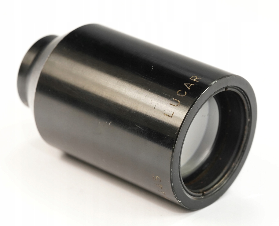 Оригінальний проекційний об'єктив Lucar 50 / 1.6, металевий корпус, розмір: довжина 7,3 см, діаметр 4,3 см, хороший стан, функціональний об'єктив, деякі пилок, видно всередині. Рекомендую, оригінальний рідкісний предмет за доступною ціною. Надзвичайно цікавий рідкісний оригінальний об’єкт. Умова ідеально видно на знімках на описі аукціону.