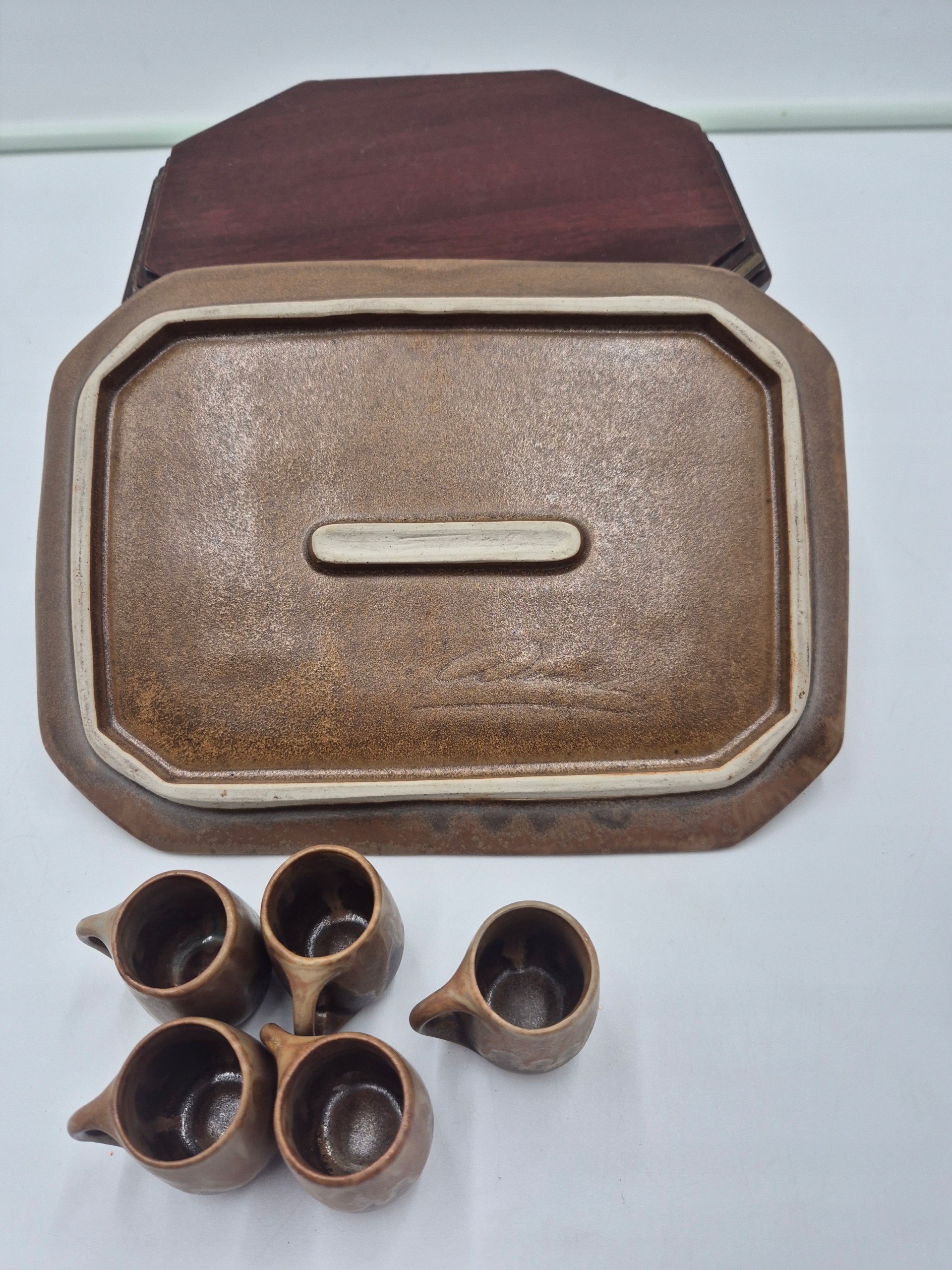 Цікаве обслуговування, прикрашене інфільтративною емалі. Під час сецесії інноваційна кераміка була частково натхненна вазами з Далекого Сходу, милуючись їх кольорами та спонтанністю та унікальністю їх прикраси. Таку кераміку іноді називають "реакційною" керамікою як реакція на традиційну європейську кераміку.