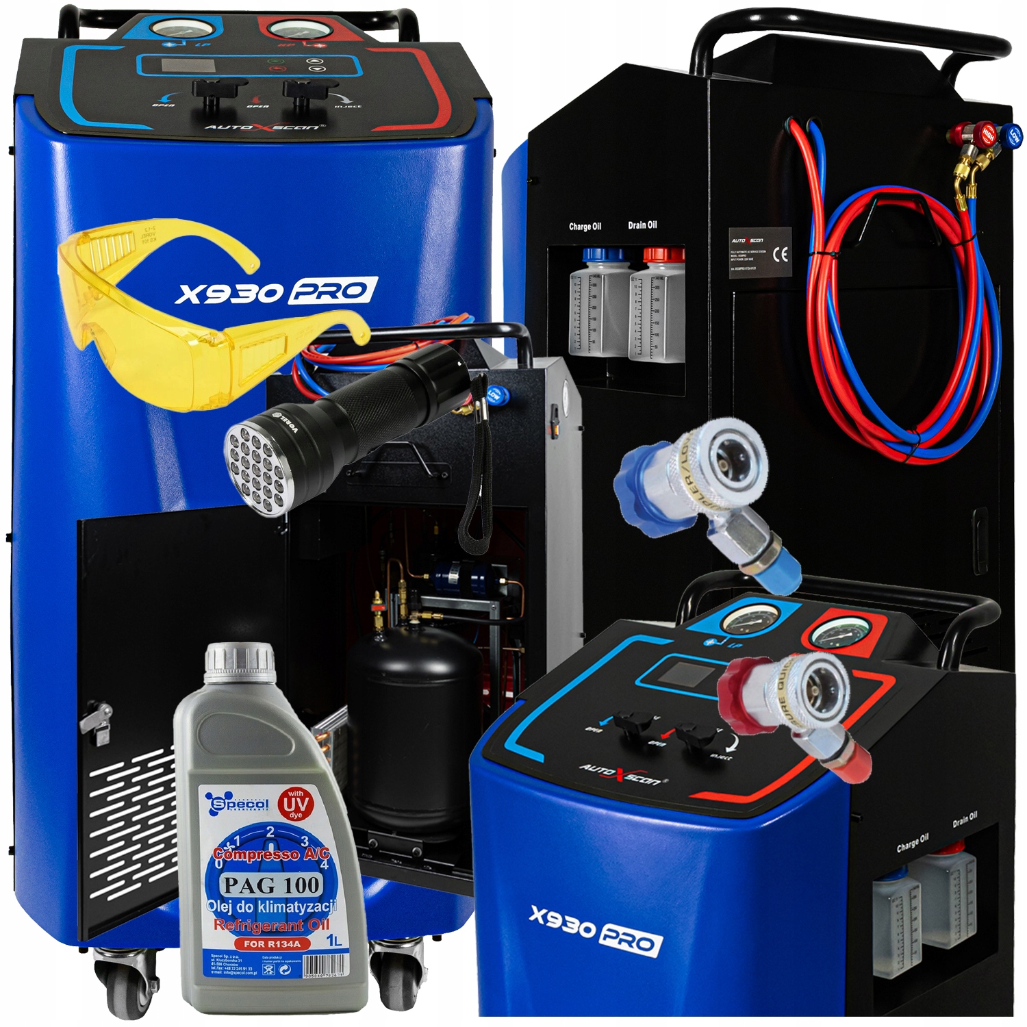 СТО КОНДИЦІОНУВАННЯ AUTOSCAN X930PRO R134a або R1234yf LANGUAGE POLISH та УФ лампа зі стеклами та маслом PAG.