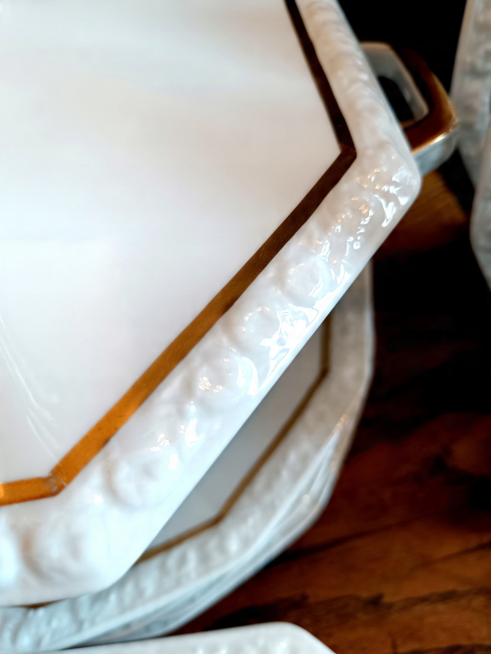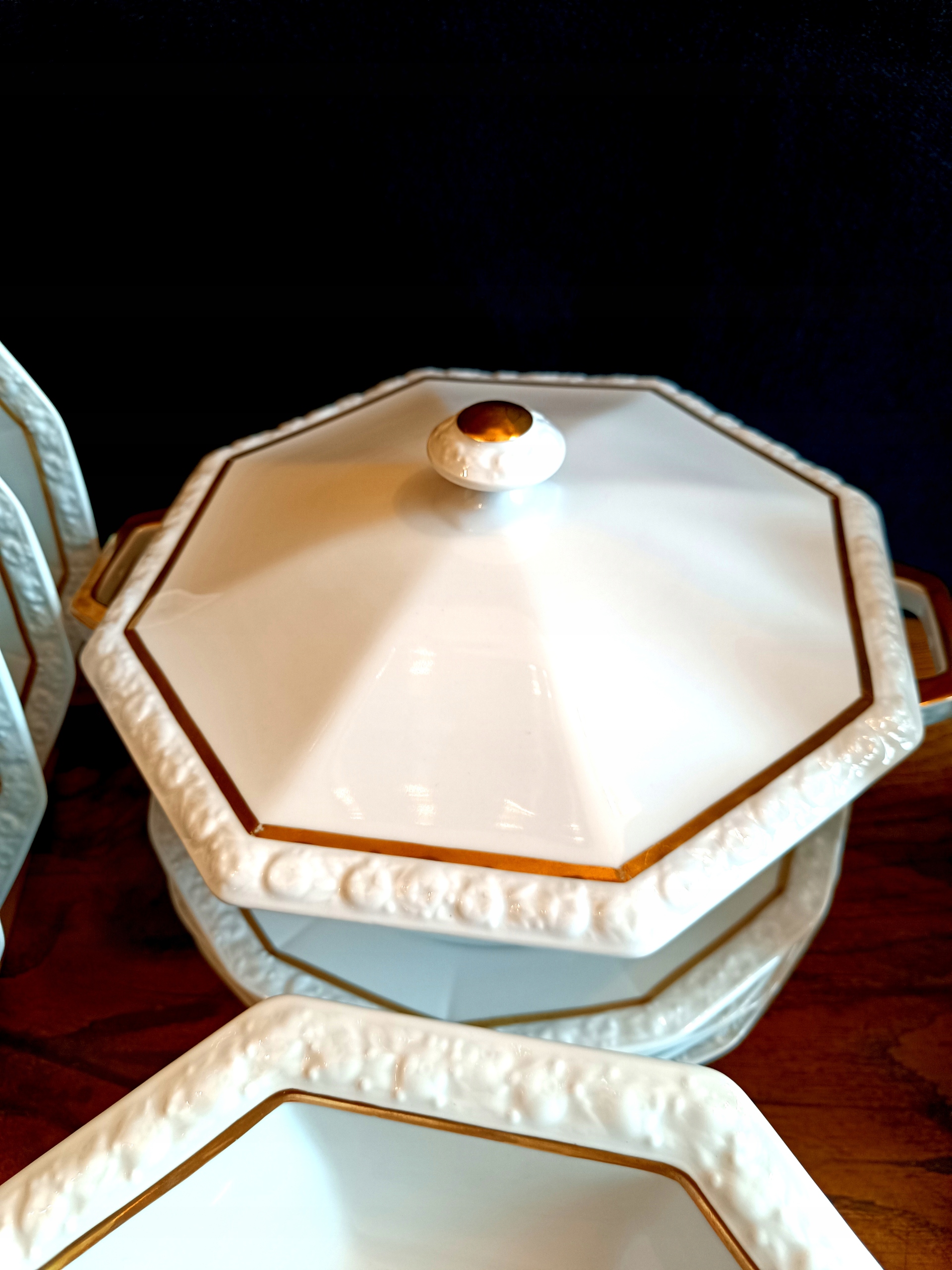 Служба складається з 43 частин, вона була виготовлена з найвищої якості порцеляни в білому кольорі. Його 8-кидкова форма характерна для колекції Maria. Оформлений характерними, рельєфними краївами у вигляді квітів та темно -синіх фруктів. Хоча здавалося б, що серія Біла Марія (яка була розроблена в 1916 році засновником бренду в данину дружині Марія) може бути не красивішою, ця послуга доводить, що він може. Серія Maria Gold була вдосконалена золотими акцентами у вигляді смуг, які прикрашають кожен елемент веб -сайту.