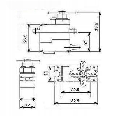 SG-90S від мікро-сімейства. Він може замінити сервопривод, такий як HITEC HS-82 MG або HS-81.