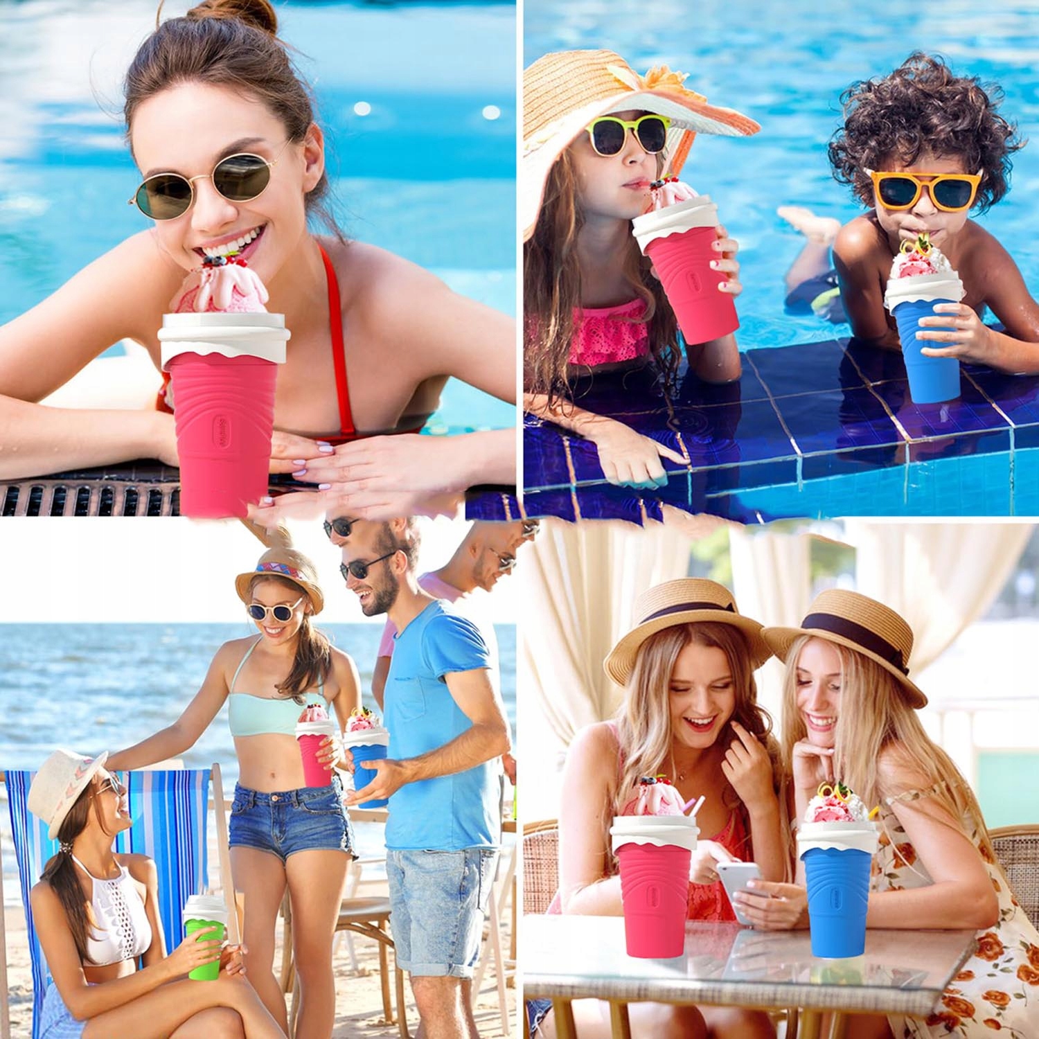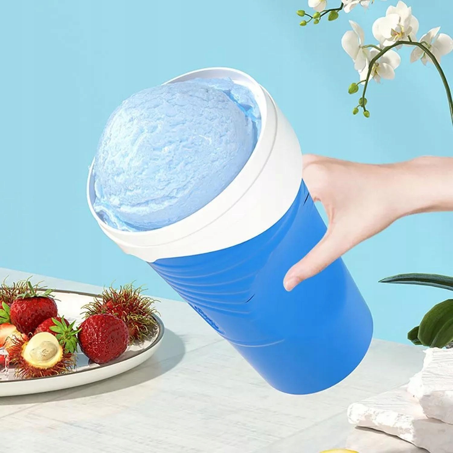 1 Тим часом покладіть у холодильник вибраний напій, сік або лимонад. 🍹 2. Зніміть пристрій для виготовлення сльозистого з холодильника. Вилийте улюблений напій і закрийте кришку. 3. Просто натисніть чашки на 1-3 хвилини. Час від часу перемішайте, щоб отримати улюблений коктейль.