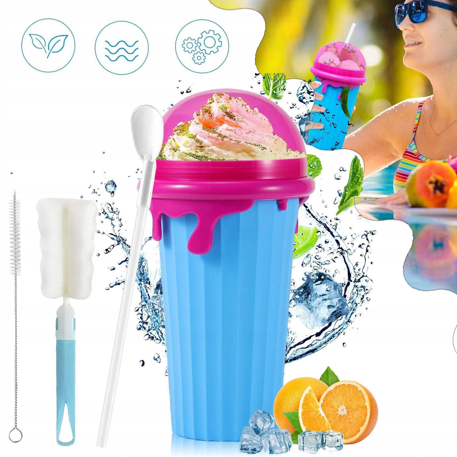 ❄ простий у використанні, і його можна повторно використовувати: просто покладіть його в холодний шар холодильника протягом 4-6 годин, а потім налийте будь-який напій, стисніть його, а потім ви можете скуштувати смачний коктейль! Ви можете мити і використовувати знову, просто мити чашку та заморозити, щоб розпочати чергову пригоду з замерзанням.