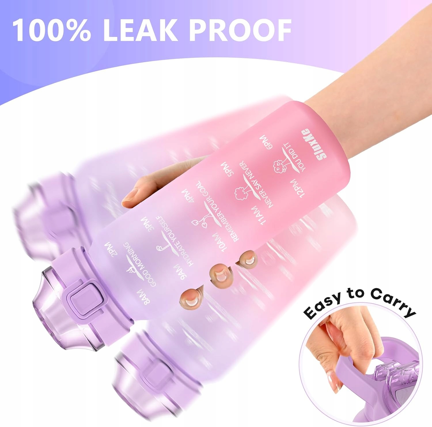 - Функціональна конструкція: Верхня частина пляшки, оснащена безпечним замком, що запобігає випадковому відкриття. Гайка можна відкрити одним натисканням кнопки. Обкладинка пропонує два налаштування, що виключає ризик випадкового удару по носу під час пиття . Пляшка має мотиваційні фрази та маркери часу. - ідеальний вибір для подарунка для себе, родини чи друзів.