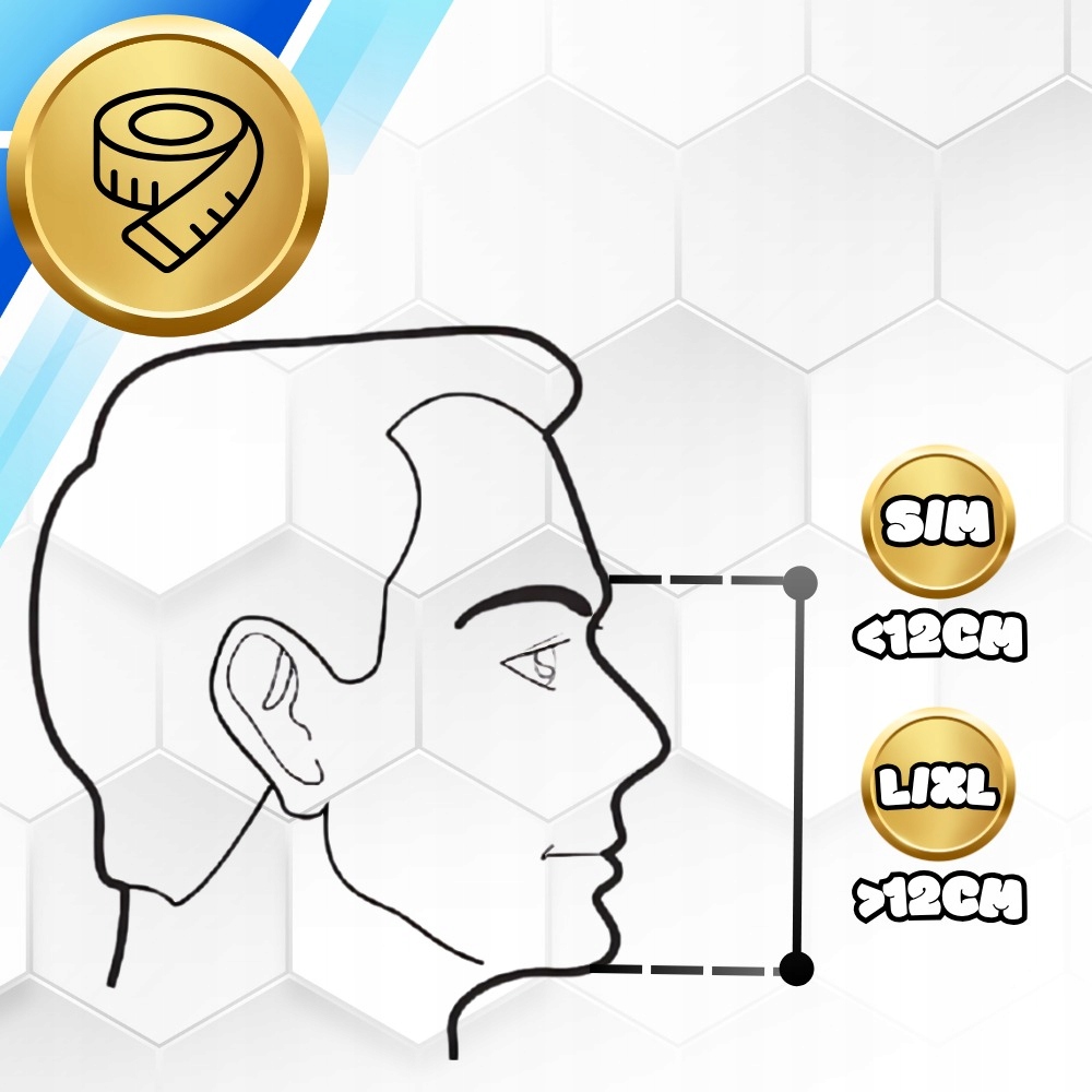 Виміряйте відстань від брів (як на малюнку нижче) до підборіддя, якщо довжина перевищує 12 см, вам потрібна маска розміру l/xl. Якщо вимір менше 12 см, вам потрібна маска S/ M