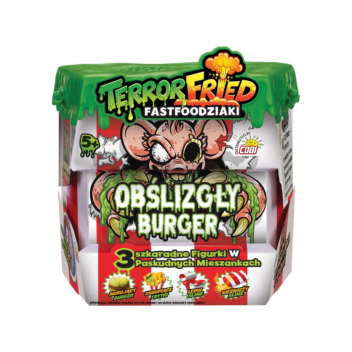 Відкрийте для себе найогидніших і найдивніших персонажів із глибини фритюрниці швидкого харчування. Кожна страва Terror Fried містить жахливі суміші, які дозволяють шипіти та хлюпати під час гри. Кілька шарів, щоб розкрити огидні смажені шматочки. .....це справжній жах. Це не звичайний бургер! Його несвіжість зустрічається не часто! Одне можна сказати напевно, всередині є 3 огидні фігури, заховані в 3 огидних сумішах. Відкрийте коробку, щоб побачити, що всередині. У набір входить: ігристий бургер, хрустка картопля фрі, клейкий слайм і несвіжий слайм.